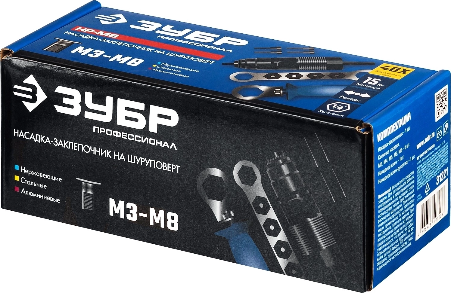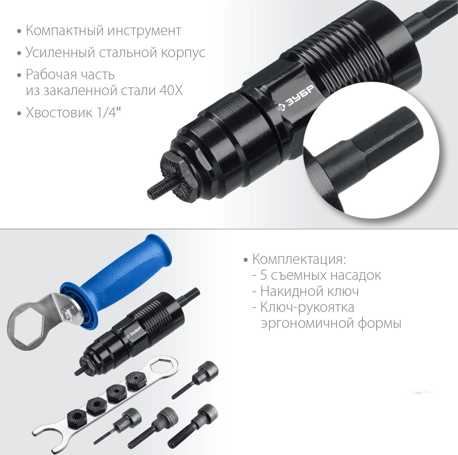 Насадка-заклепочник ЗУБР - это надежный и компактный инструмент для формирования соединений с помощью заклепок.