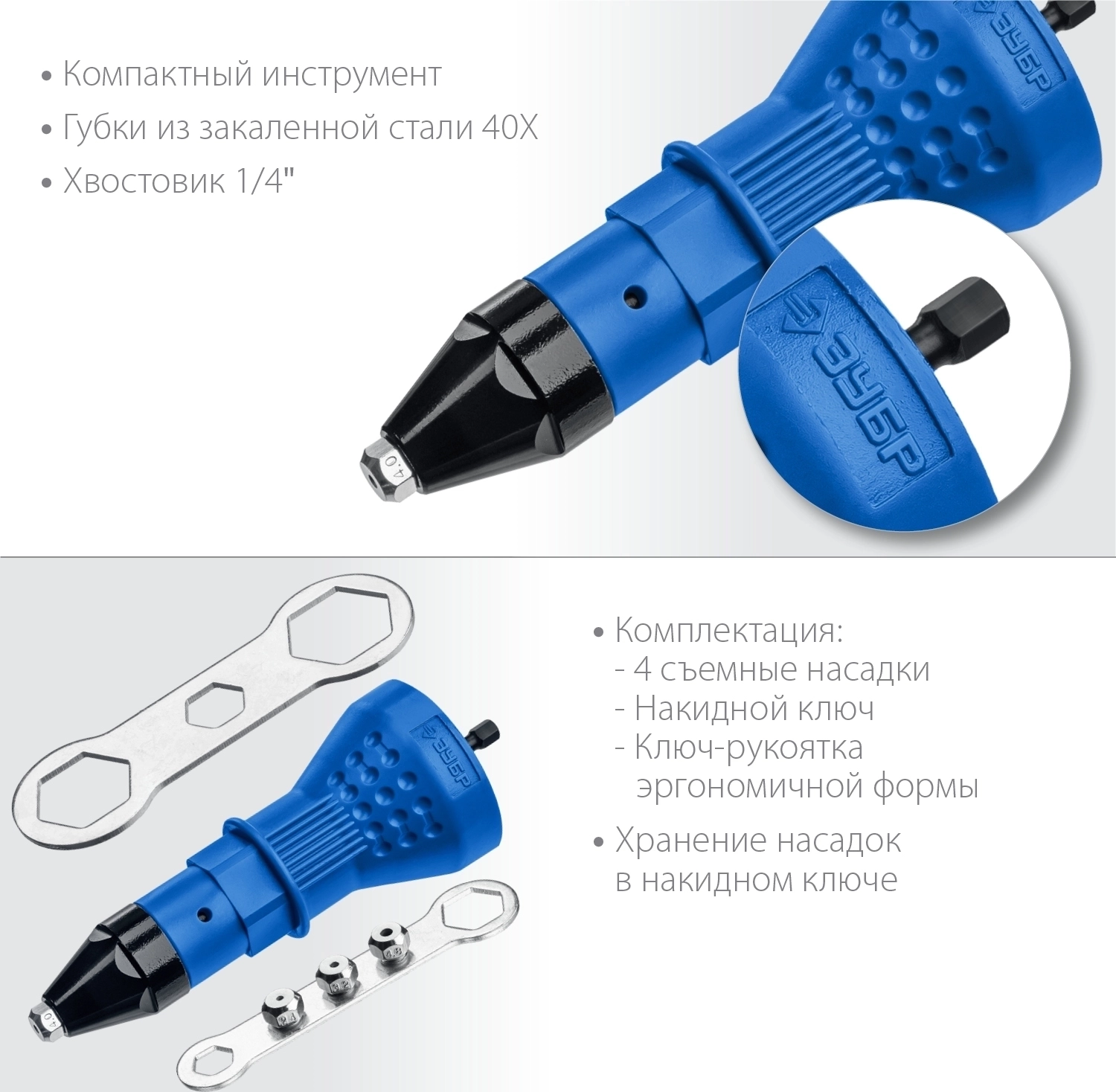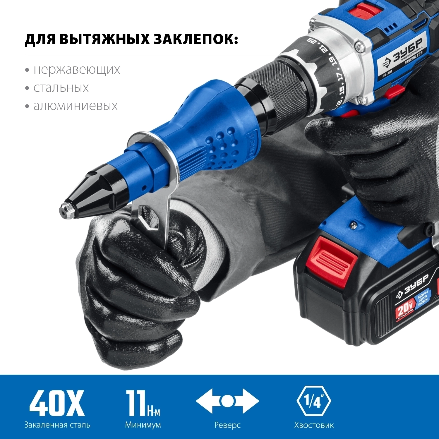 Насадка-заклепочник ЗУБР - это надежный и компактный инструмент для формирования соединений с помощью заклепок.