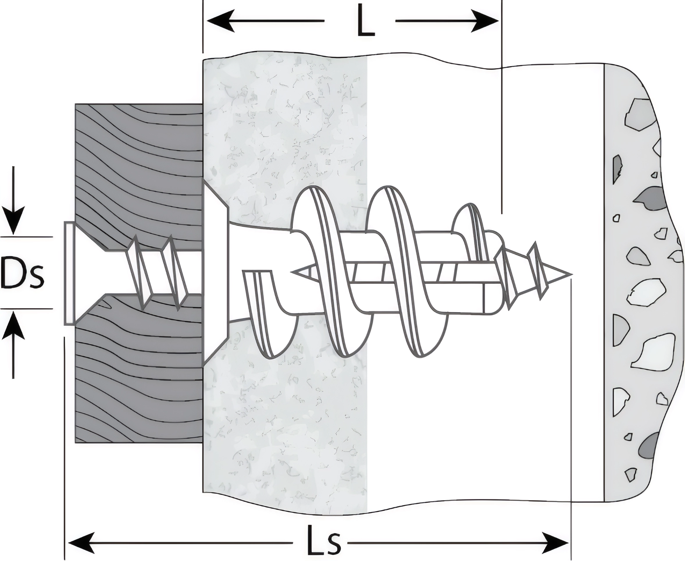 - Высокая резьба с крупным шагом увеличивает площадь контакта и фиксирует дюбель в гипсокартоне, не разрушая его