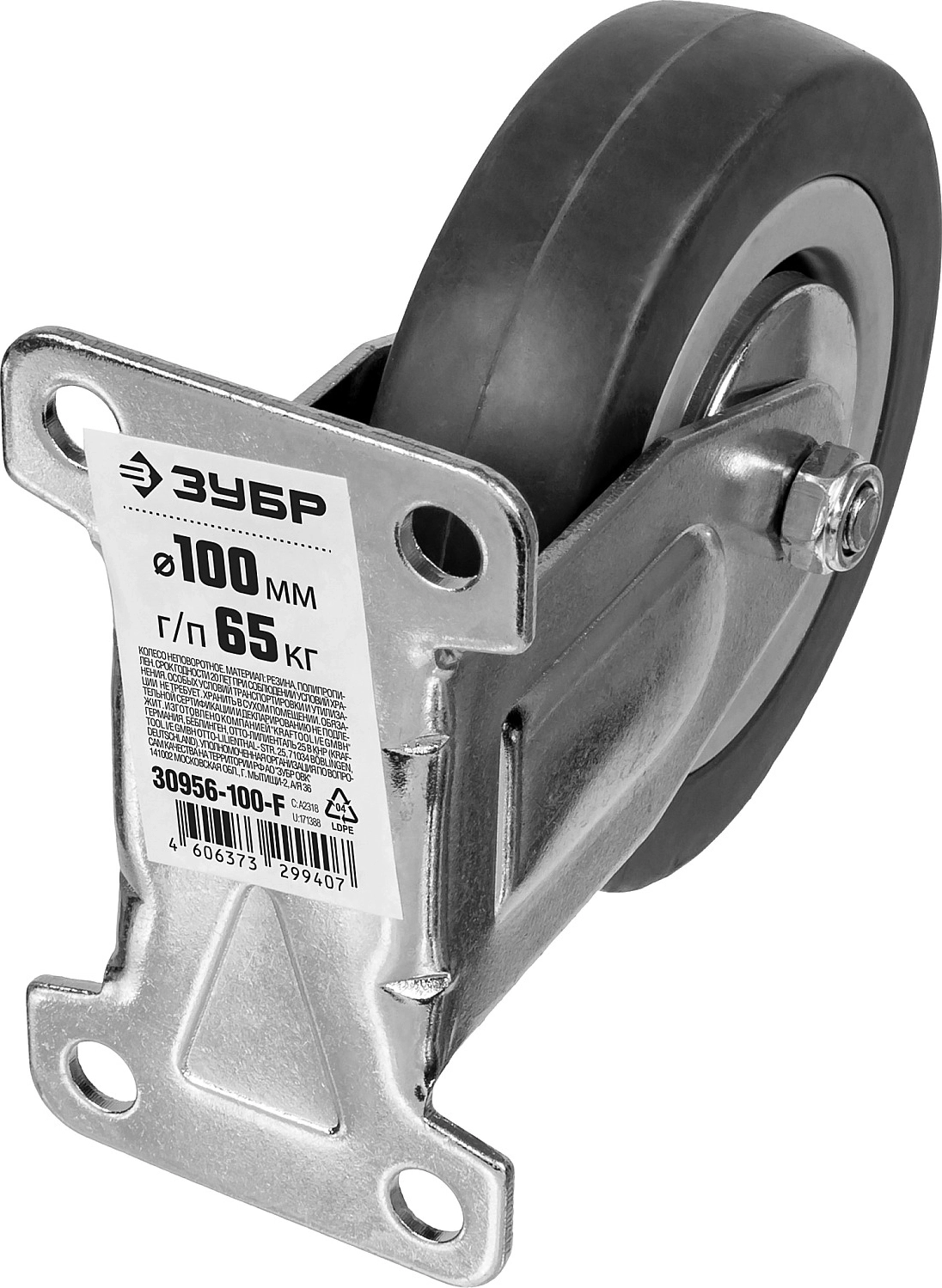 Неповоротное колесо ЗУБР d 100 мм, г/п 65 кг, резина/полипропилен