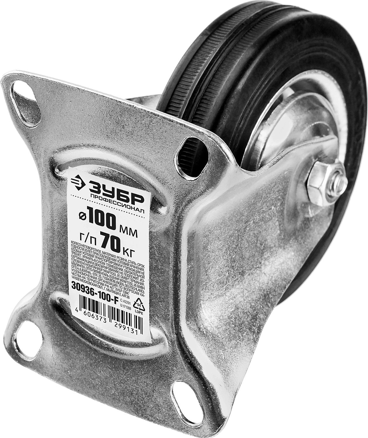 Неповоротное колесо ЗУБР d 100 мм г/п 70 кг игольчатый подшипник резина/металл