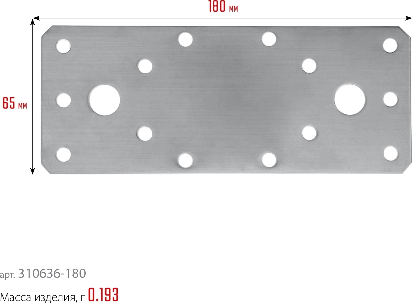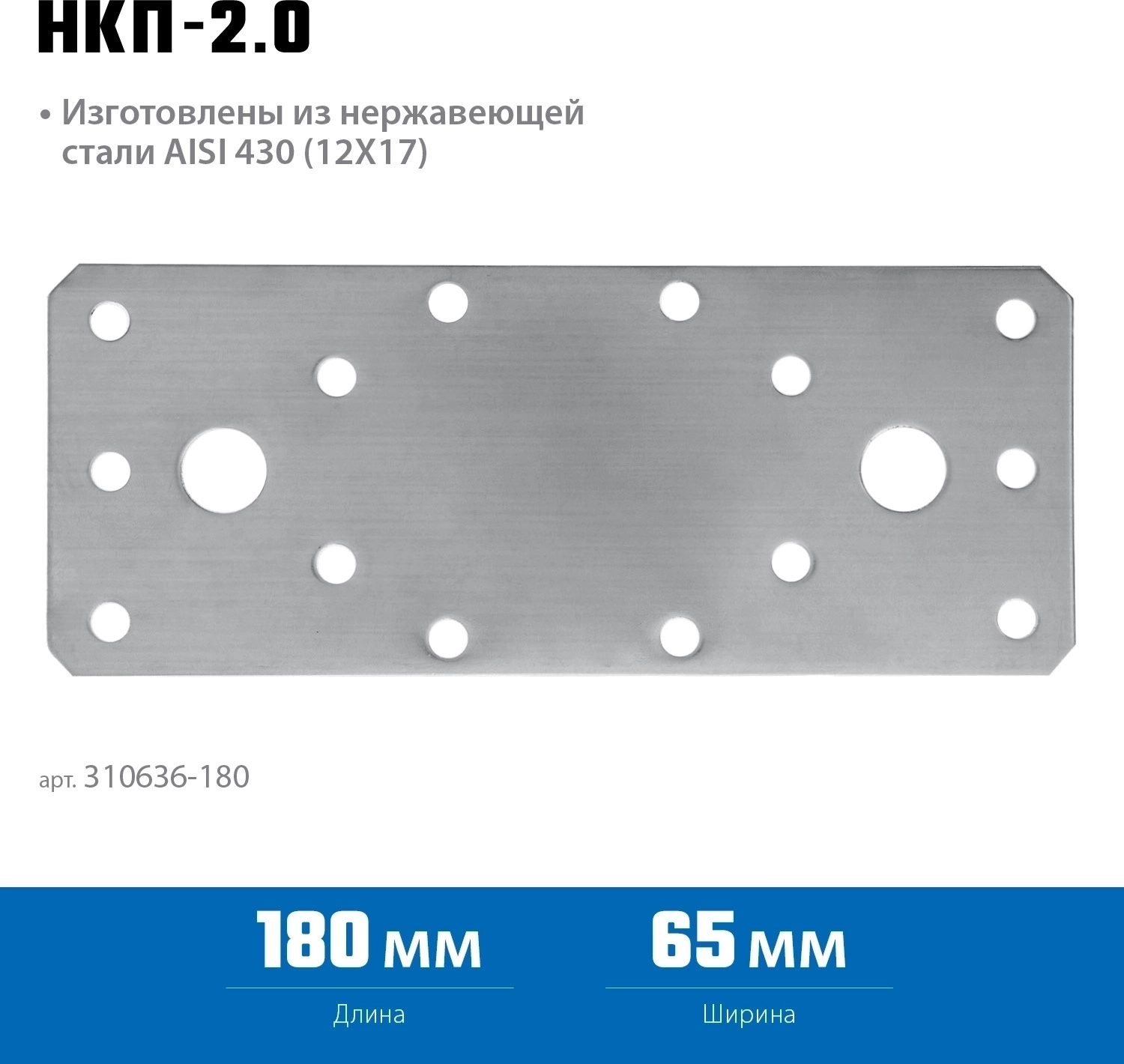 Нержавеющая крепежная пластина ЗУБР НКП-2.0 180 x 65 x 2 мм