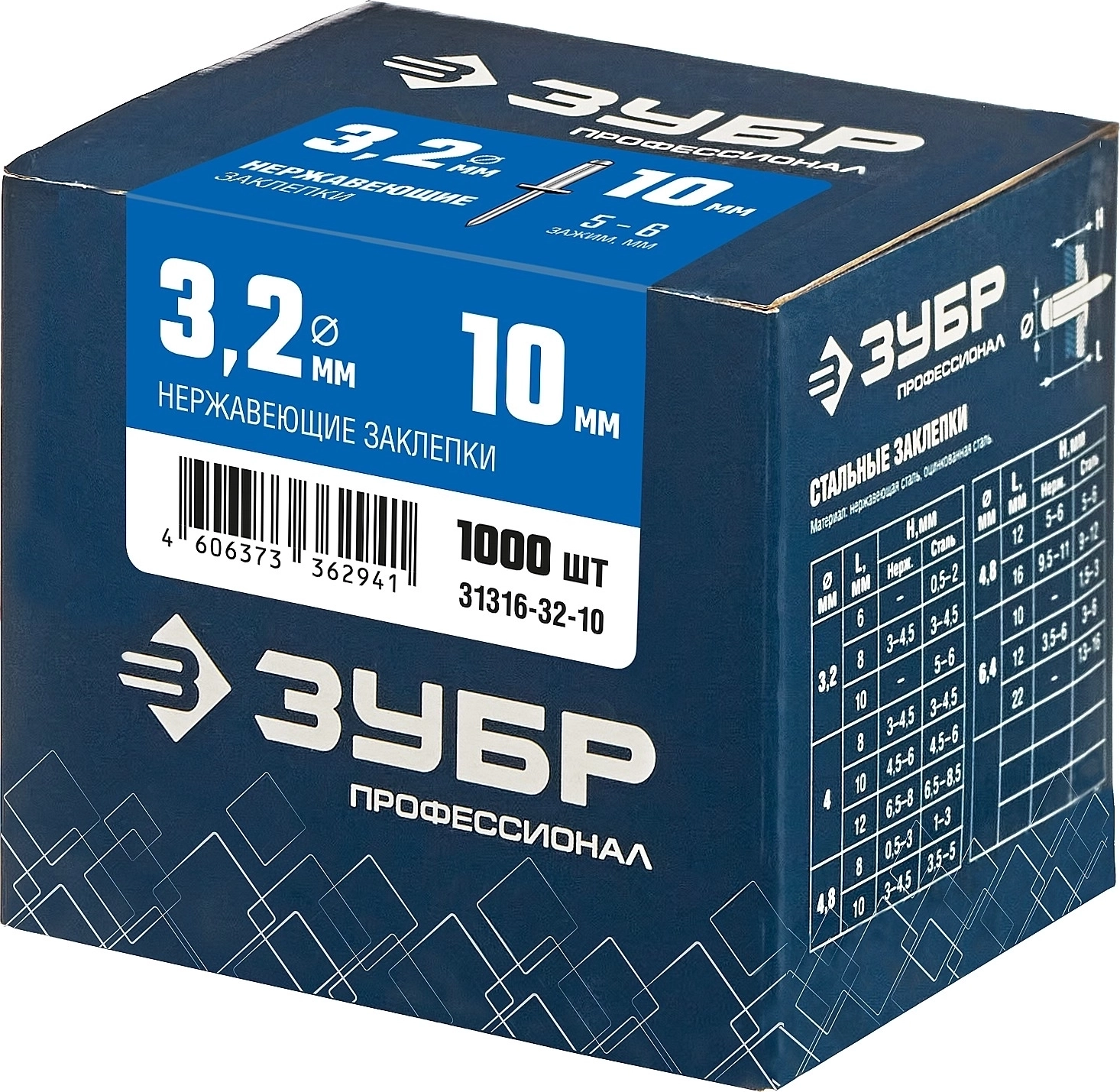 Нержавеющие заклепки ЗУБР 3.2 x 10 мм 1000 шт