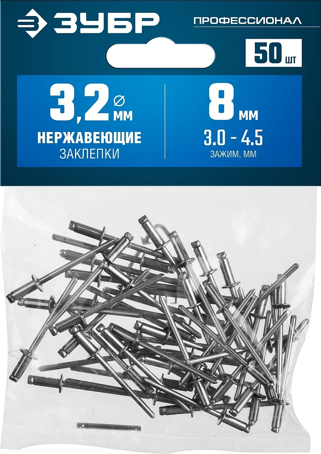 Нержавеющие заклепки ЗУБР 3.2 x 8 мм 50 шт