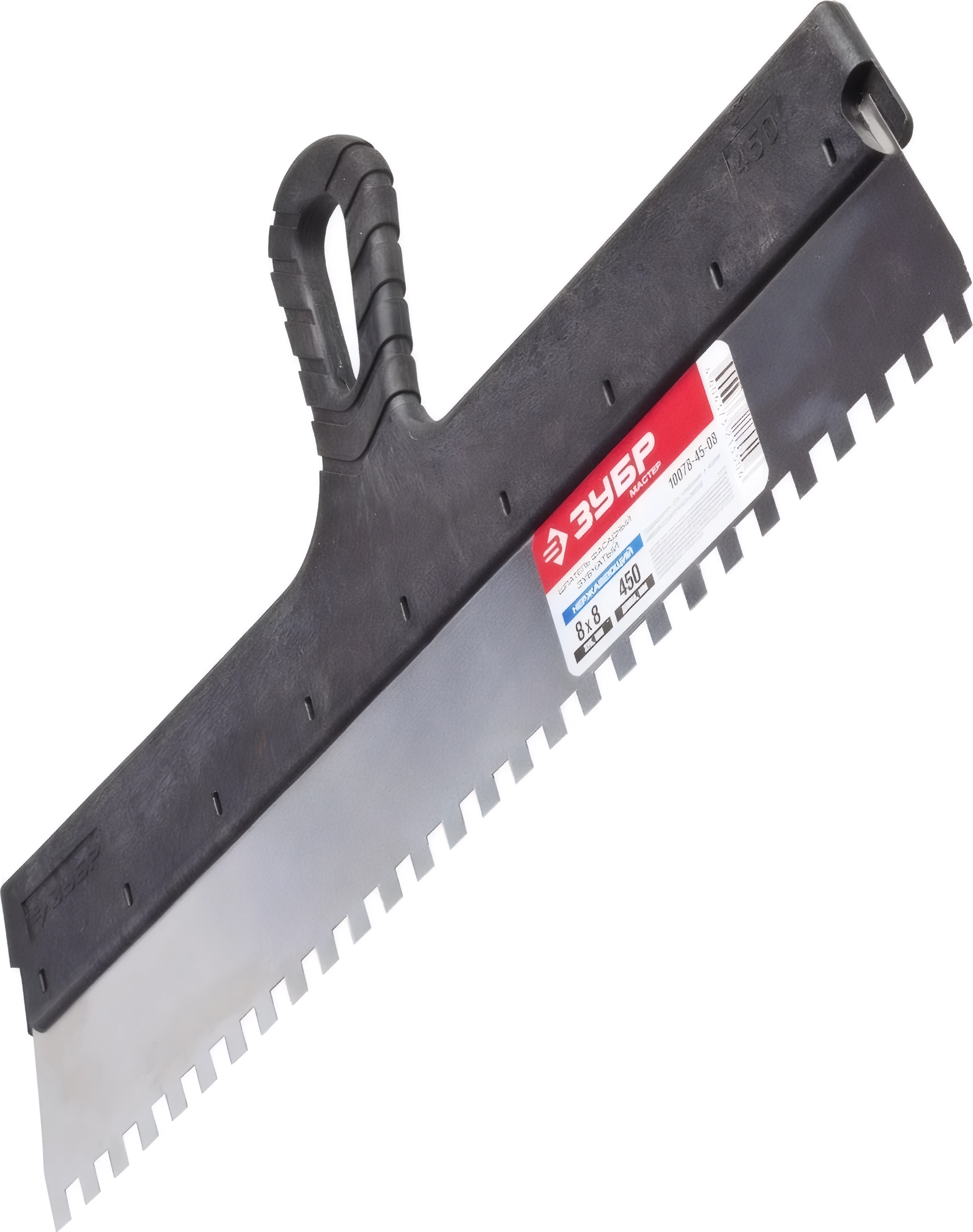 Нержавеющий фасадный шпатель ЗУБР 450 мм, зуб 8 х 8 мм, пластиковая ручка