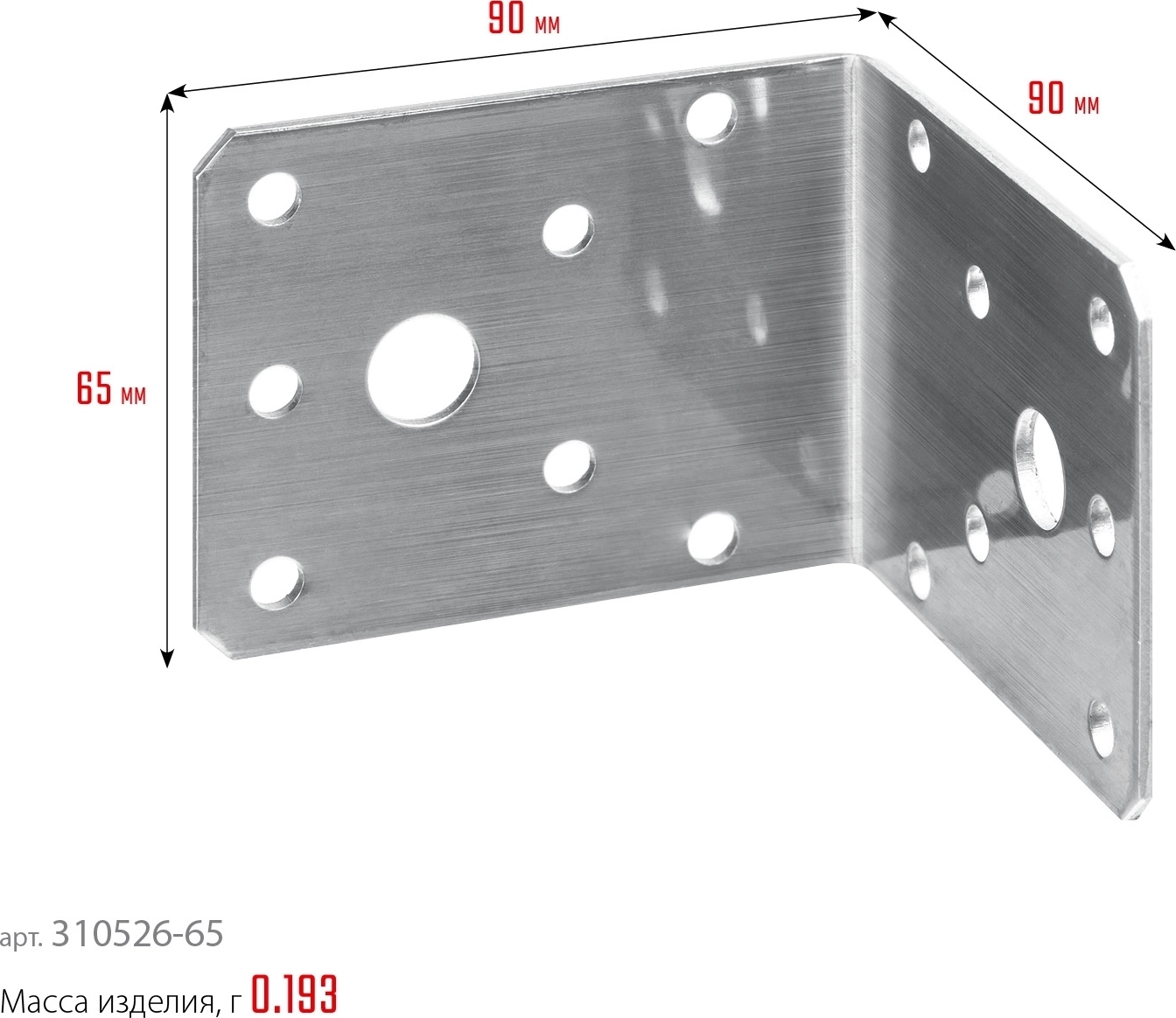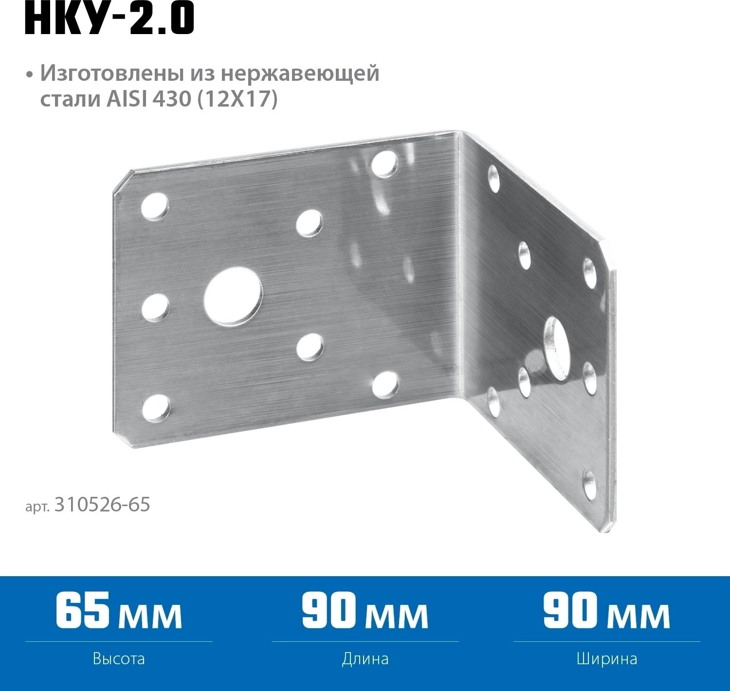 Нержавеющий крепежный уголок ЗУБР НКУ-2.0 65 x 90 x 90 x 2 мм