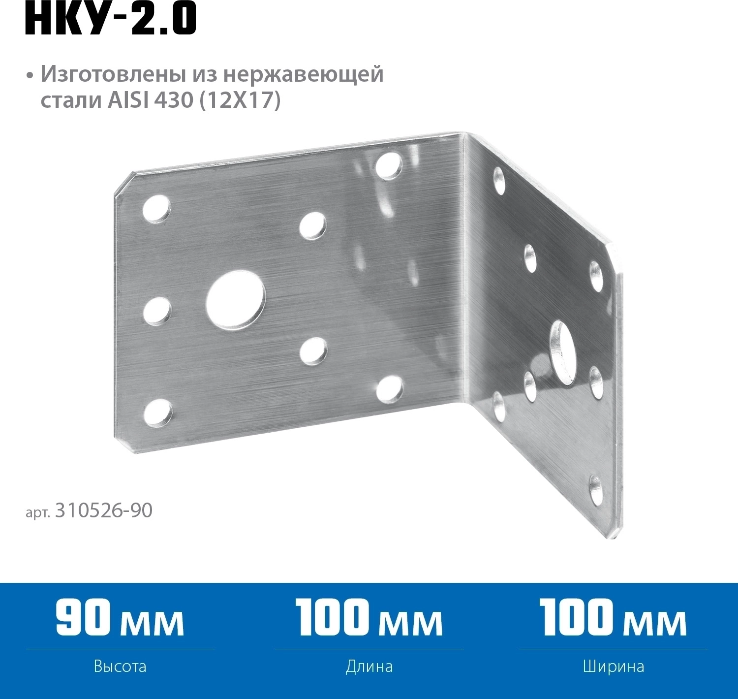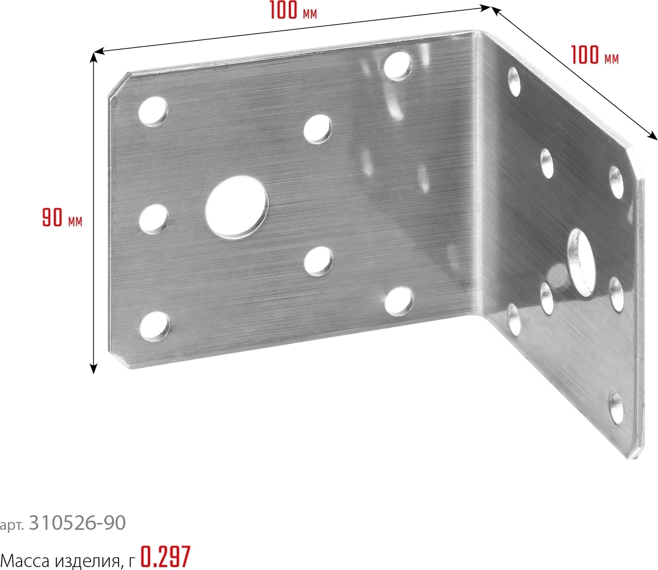Нержавеющий крепежный уголок ЗУБР НКУ-2.0 90 x 100 x 100 x 2 мм