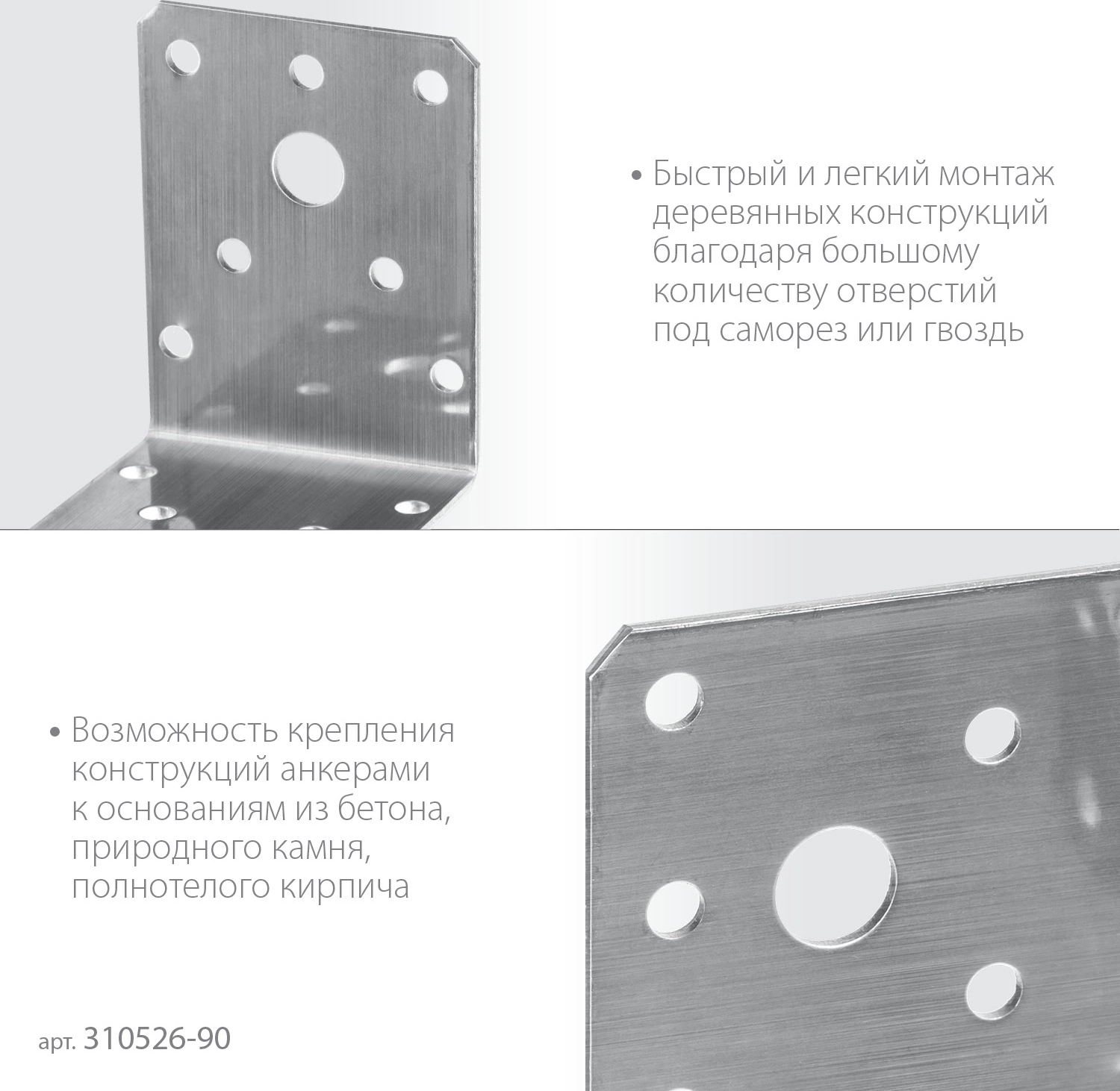 - Большое количество отверстий под гвоздь способствует легкому и быстрому креплению угла