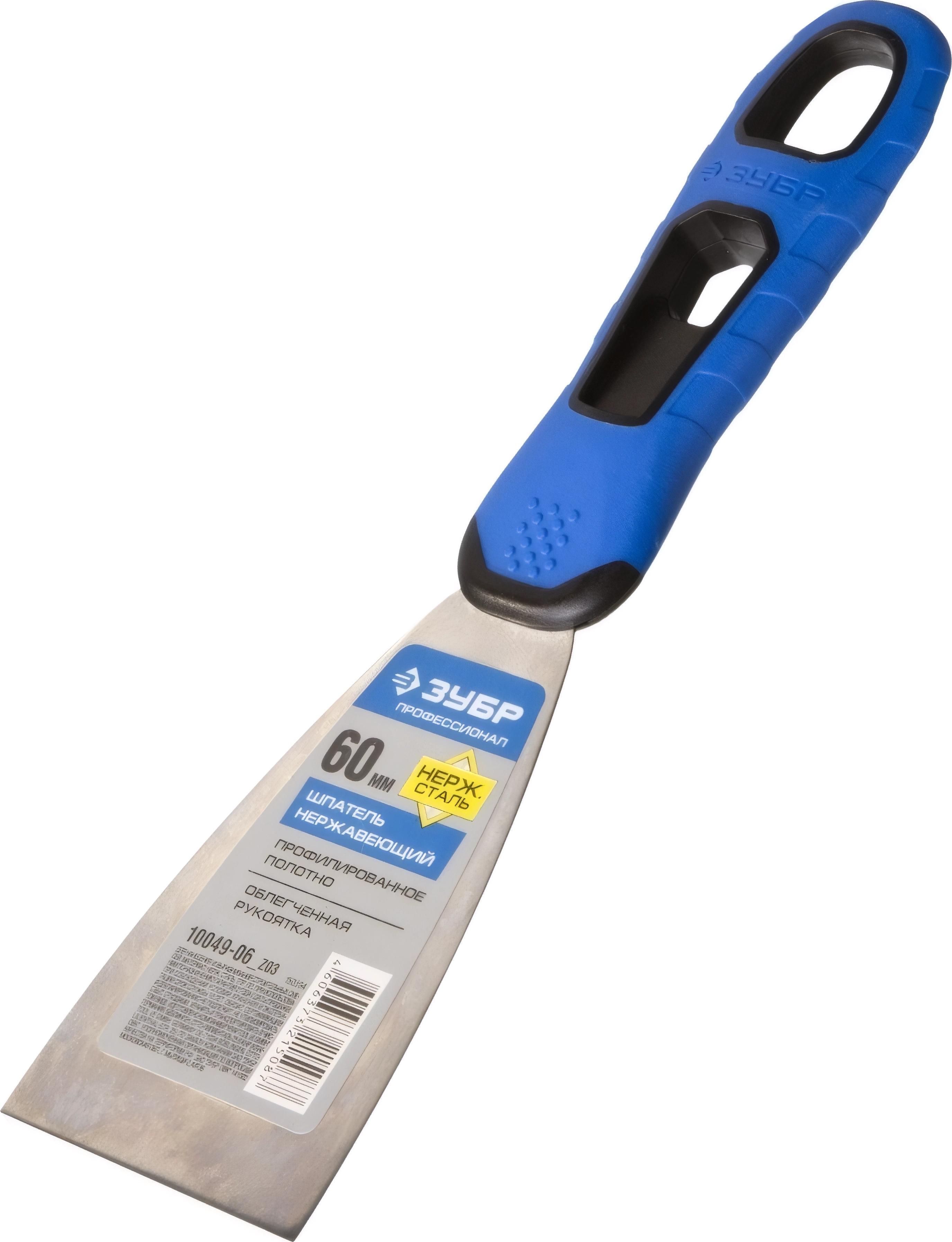 Нержавеющий шпатель ЗУБР 60 мм х-образное профилированное полотно облегченная двухкомпонентная ручка
