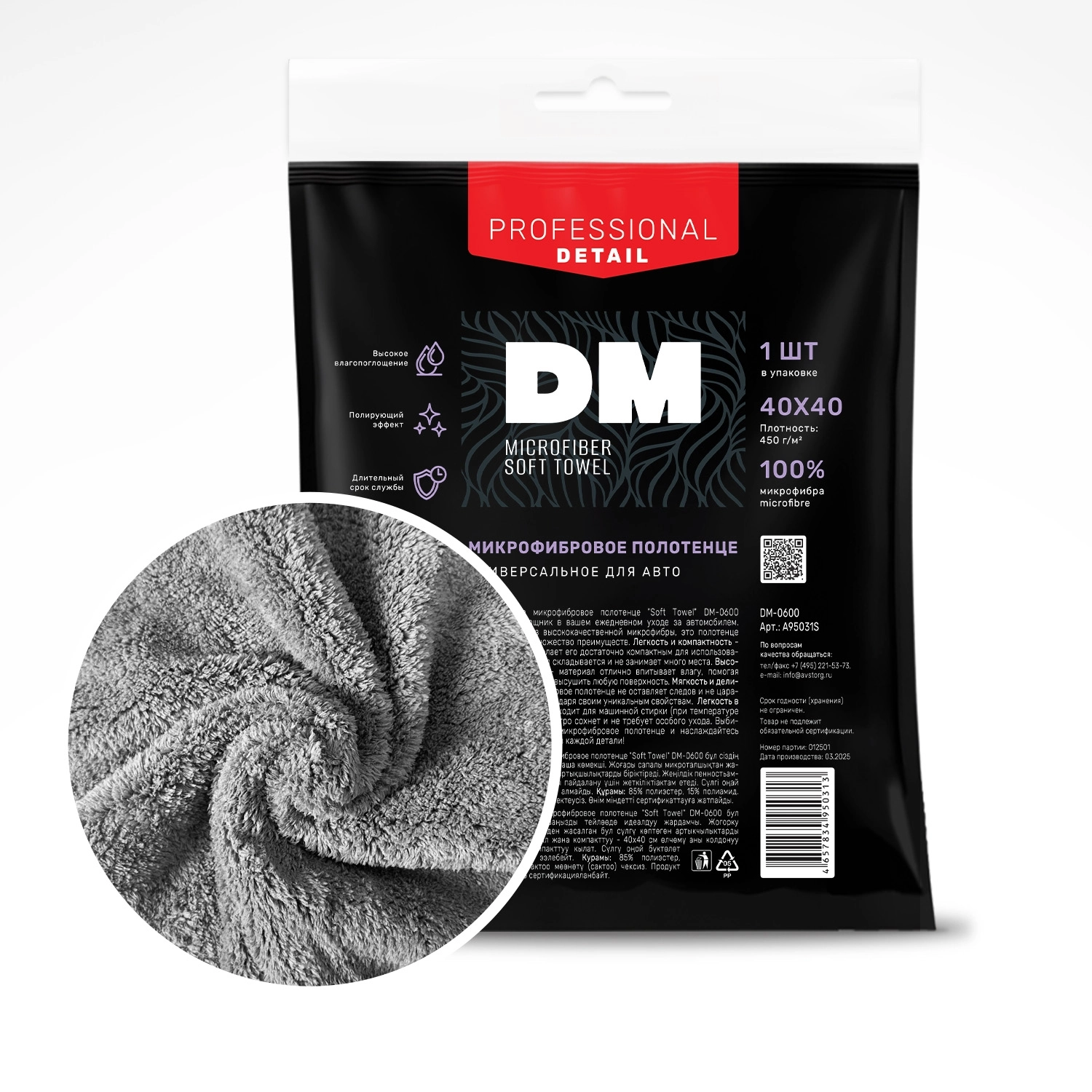 Микрофибровое полотенце для сушки кузова DM-0410 (35x40см)(1шт) арт. 117507