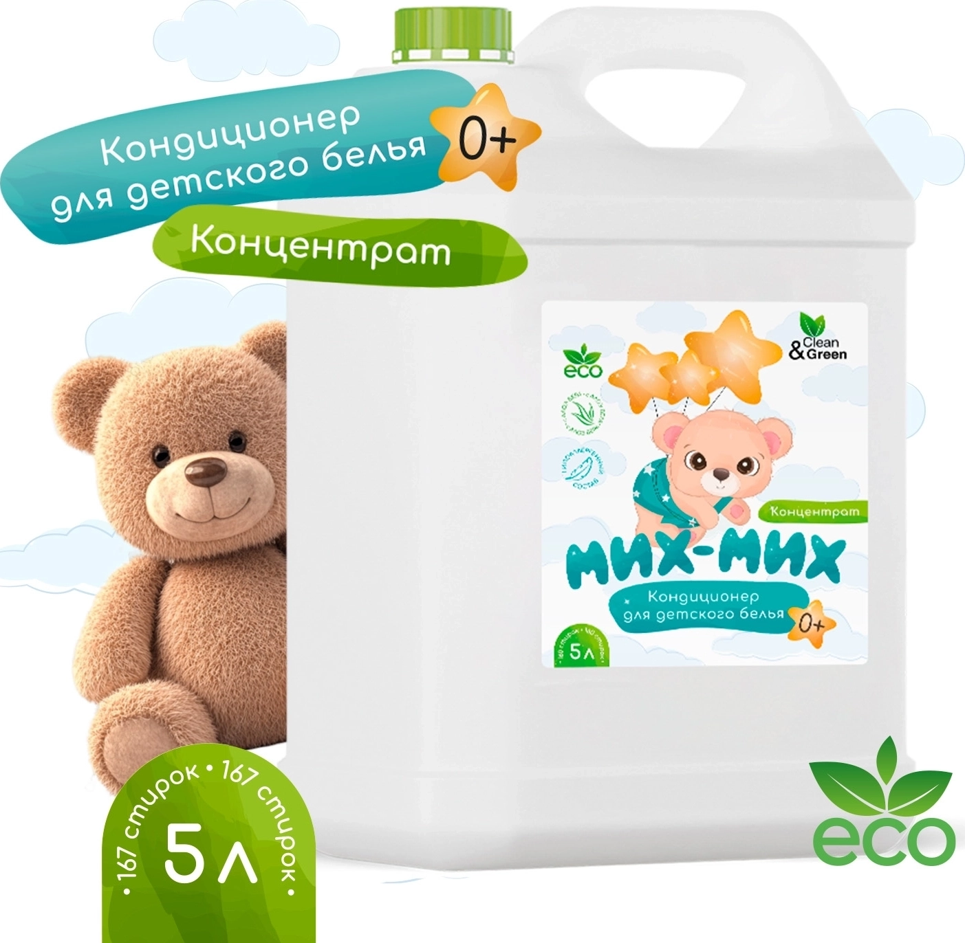 Кондиционер для детского белья "Мих-Мих" (гипоаллергенный) 5 л. (ПЭНД) Clean&Green арт. 117623