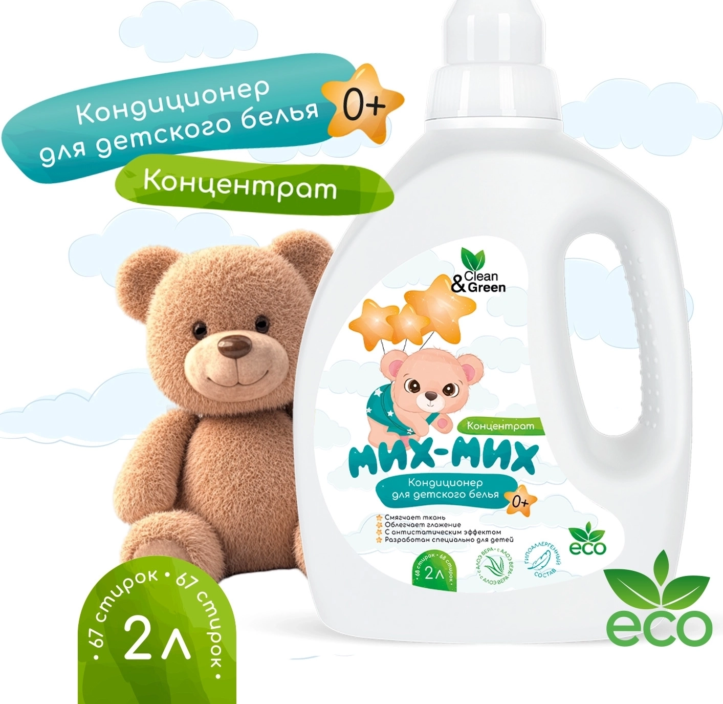 Кондиционер для детского белья Мих-Мих (гипоаллергенный) 2 л. (ПЭНД) Clean&Green арт. 117669