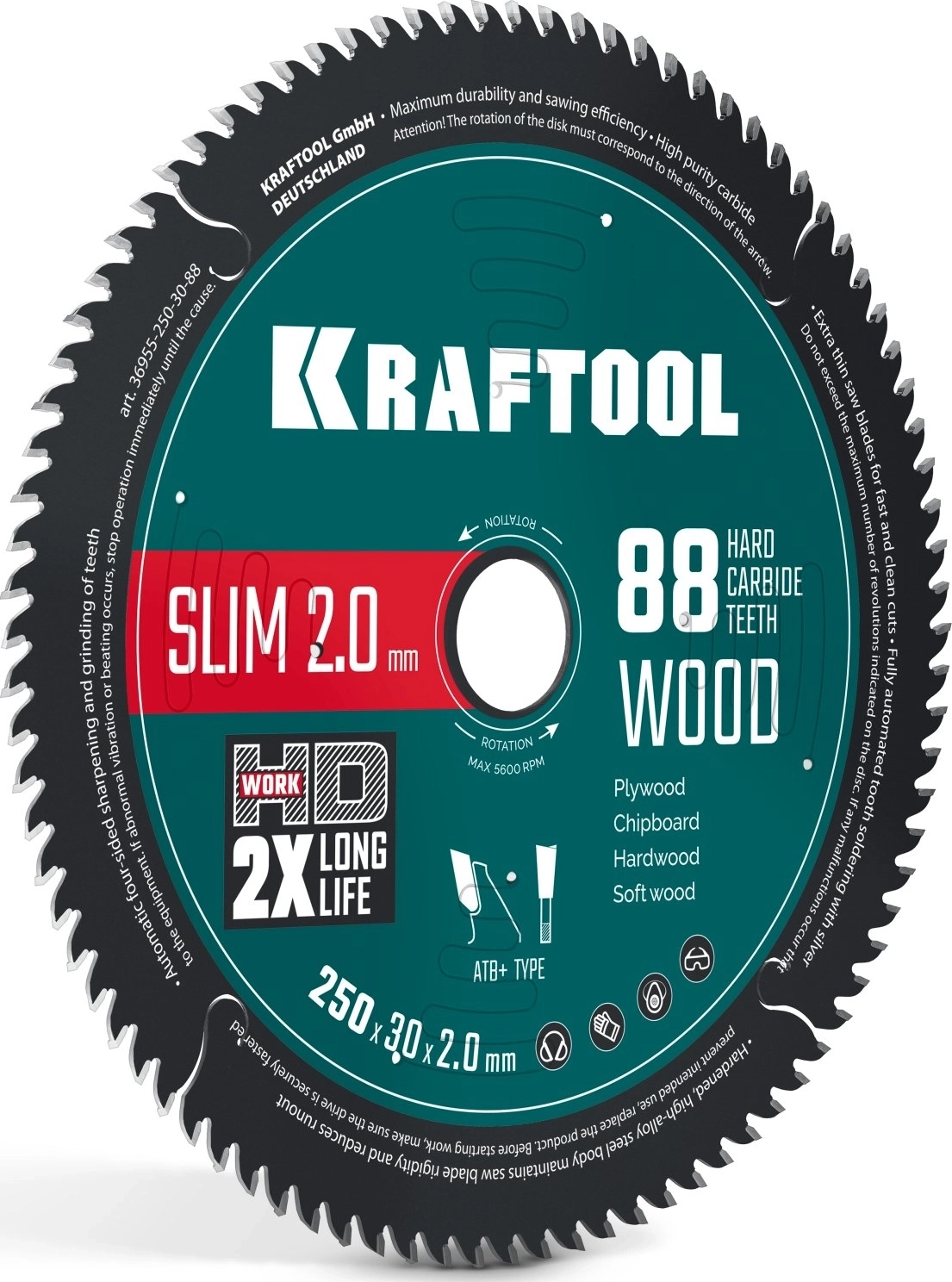 Slim wood cut 250 х 30 x 2.0 мм, 88Т, диск пильный по дереву арт. 119656