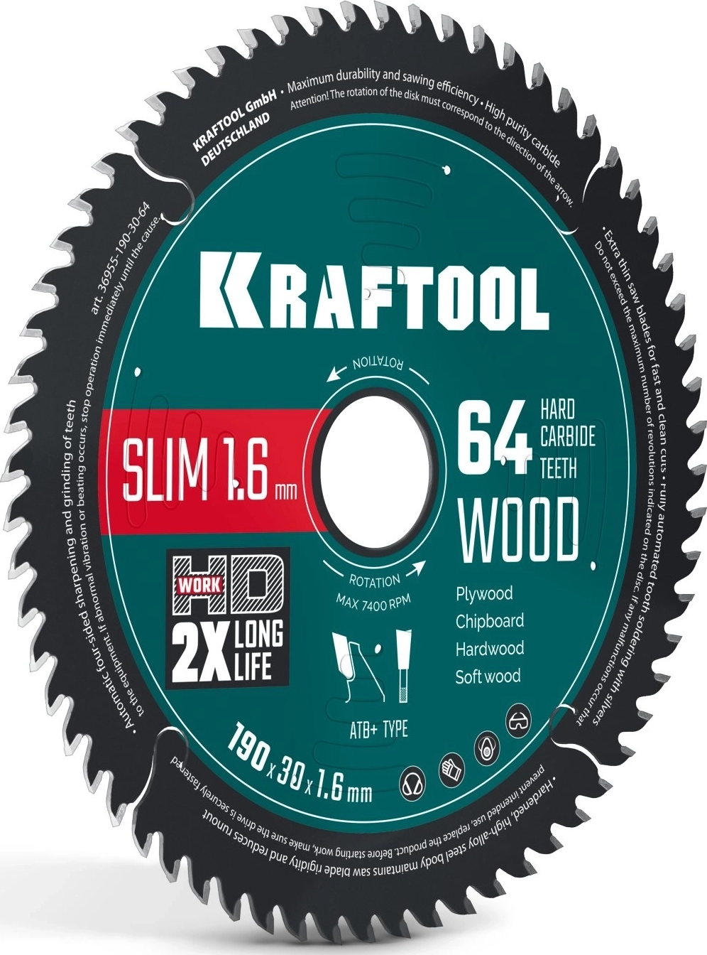 Slim wood cut 190 х 30 x 1.6 мм, 64Т, диск пильный по дереву арт. 119654