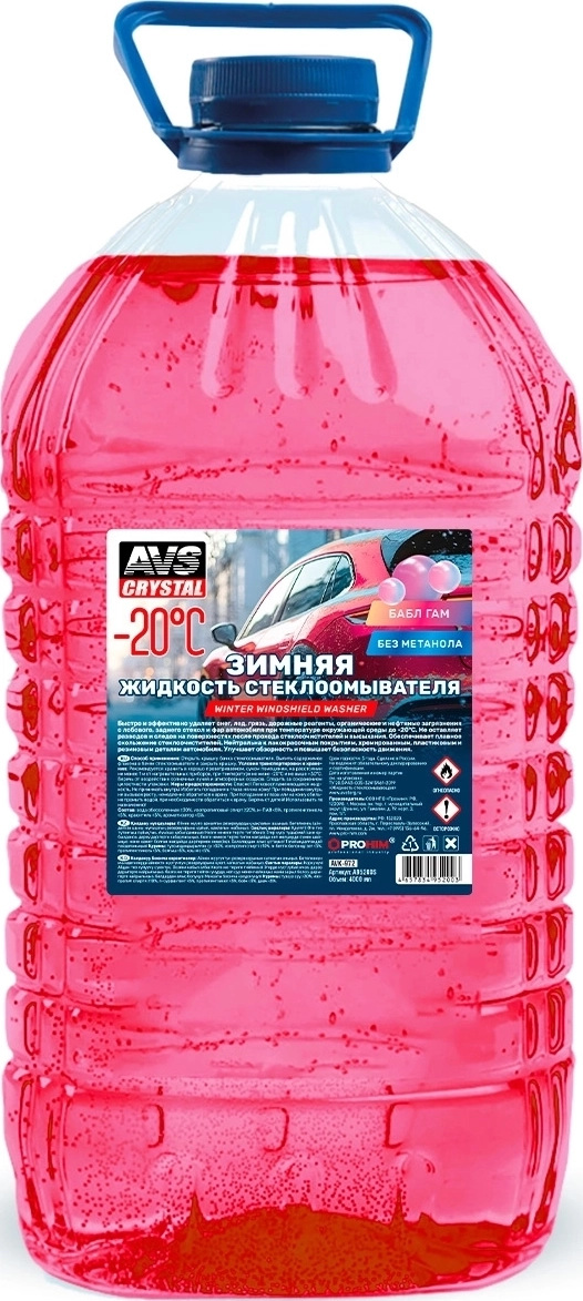 Зимняя жидкость стеклоомывателя "BubbleGum/Бабл гам" -20С (ПЭТ) 4 л AVS AVK-972 арт. 119699