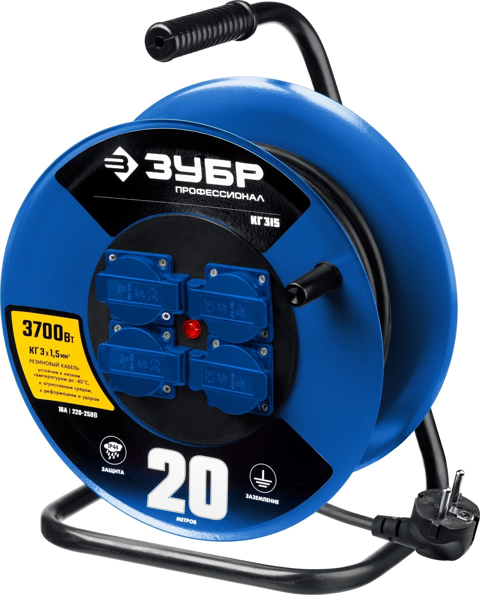 Силовой удлинитель на стальной катушке КГ-315 КГ 3 x 1.5 мм2 20 м 3700 Вт IP44 арт. 109707