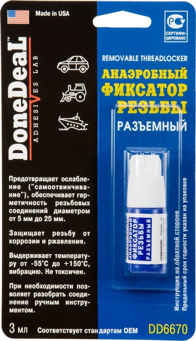 DoneDeal разъемный removable threadlocker 3 мл(b)