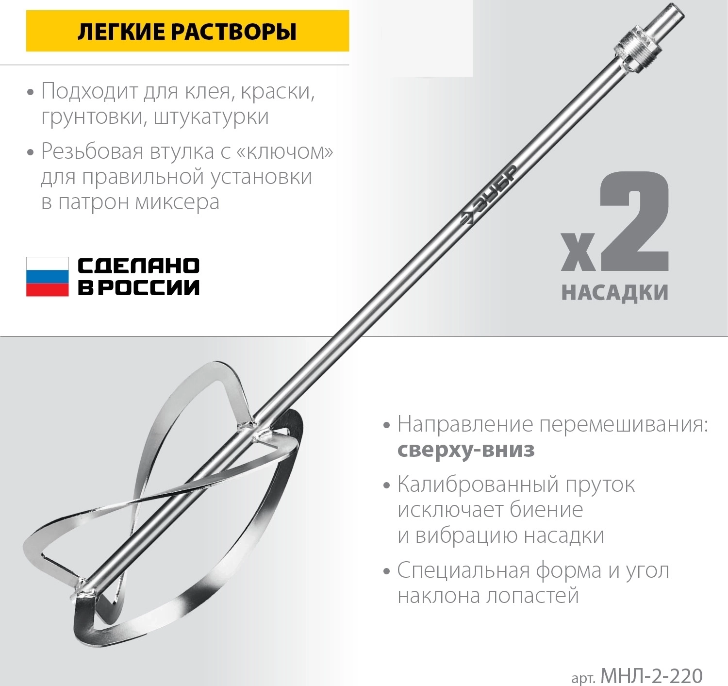 Комплект насадок-миксеров М27, 2 шт, d220 мм общий, ″сверху-вниз″ для легких растворов арт. 111478