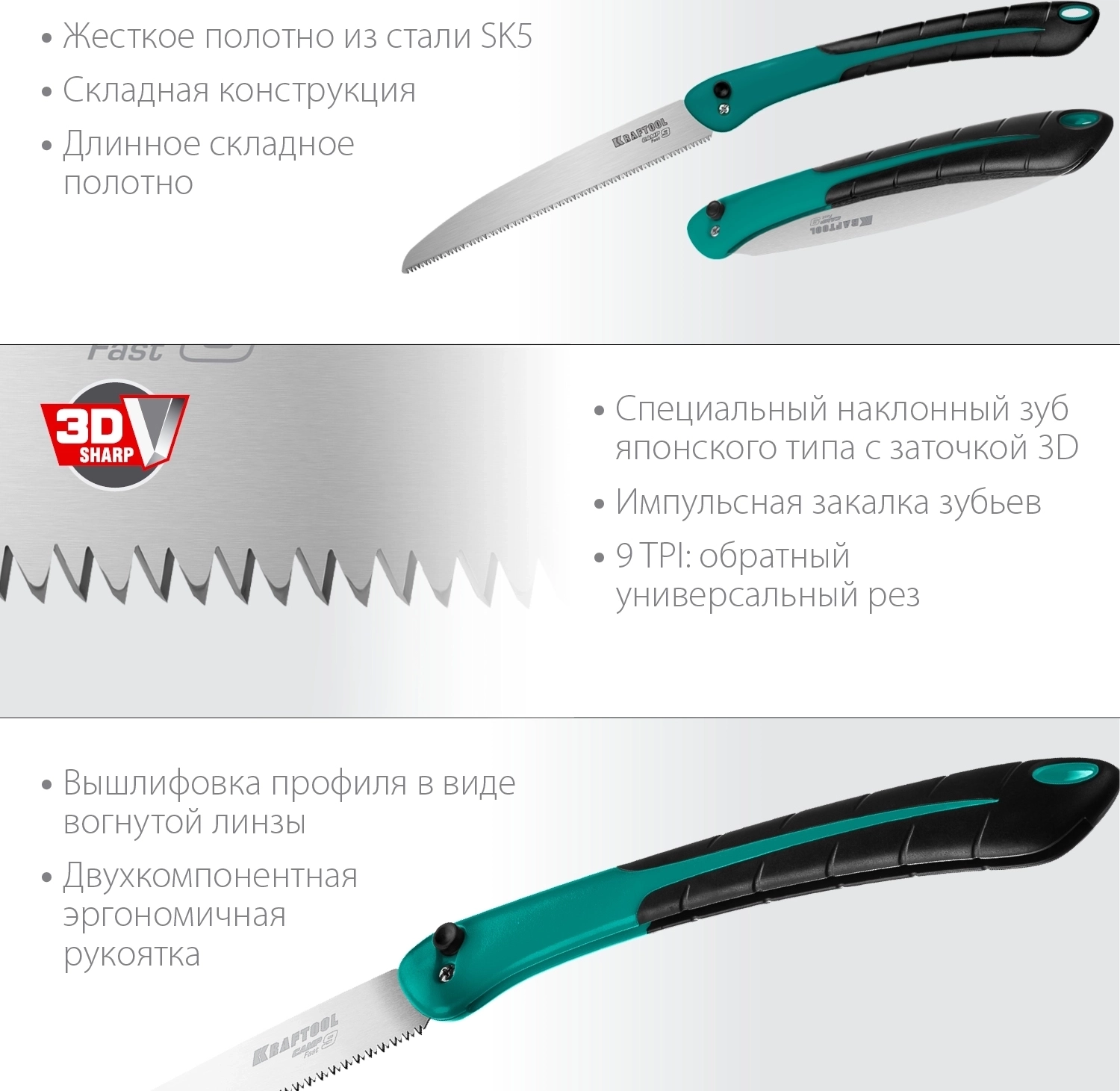 Ножовка для быстрого реза сырой древесины KRAFTOOL Camp Fast 9, 250 мм