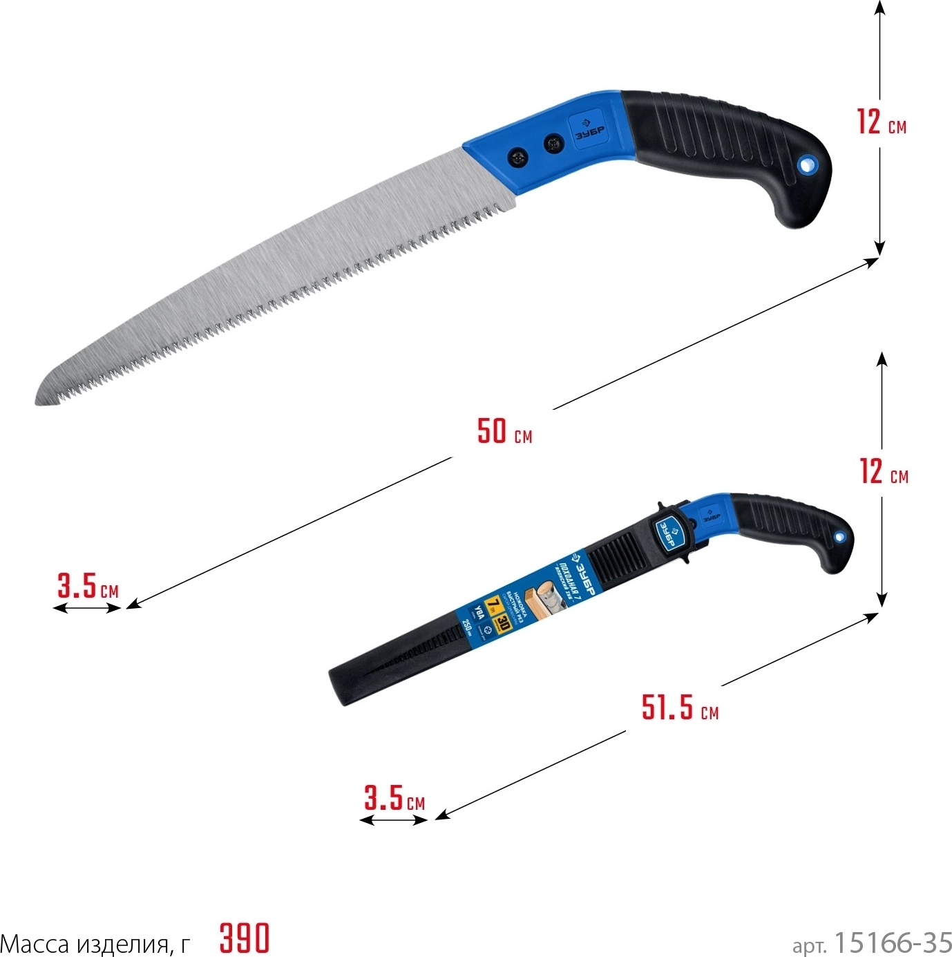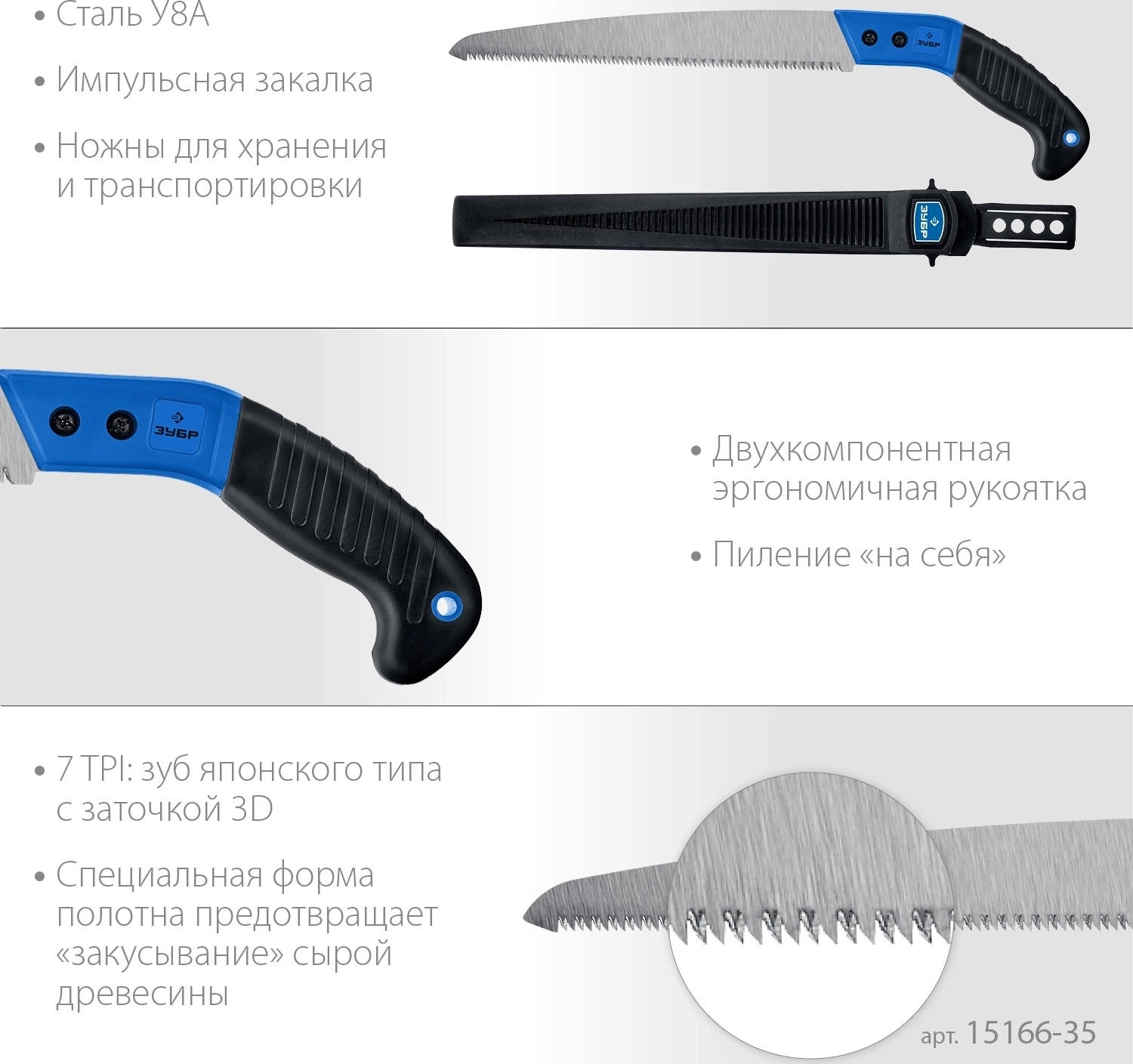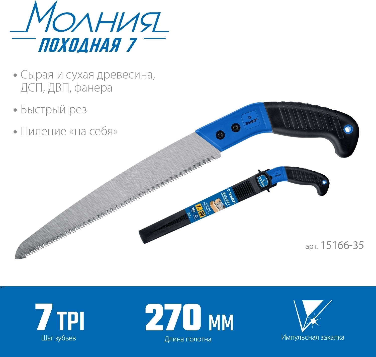 Ножовка для быстрого реза сырой древесины ЗУБР Походная 7 270 мм