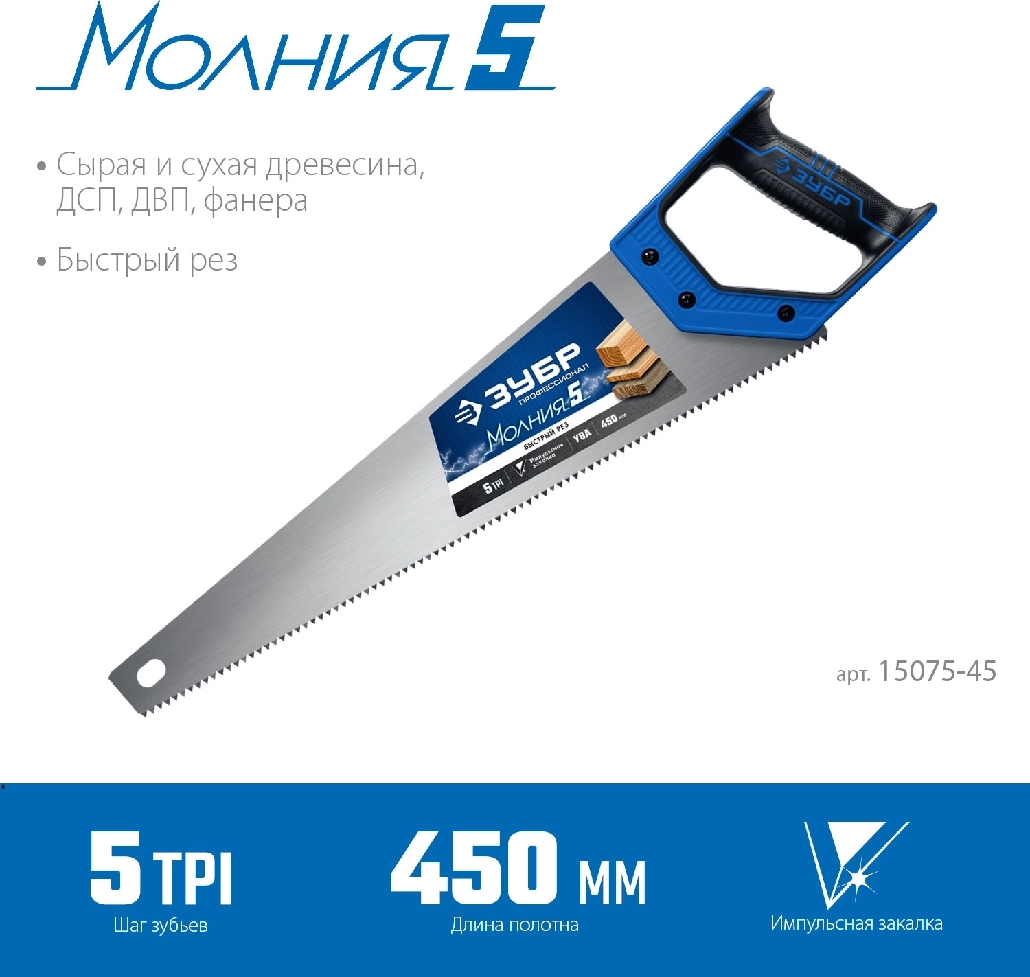 Ножовка по дереву ЗУБР Молния-5 450 мм