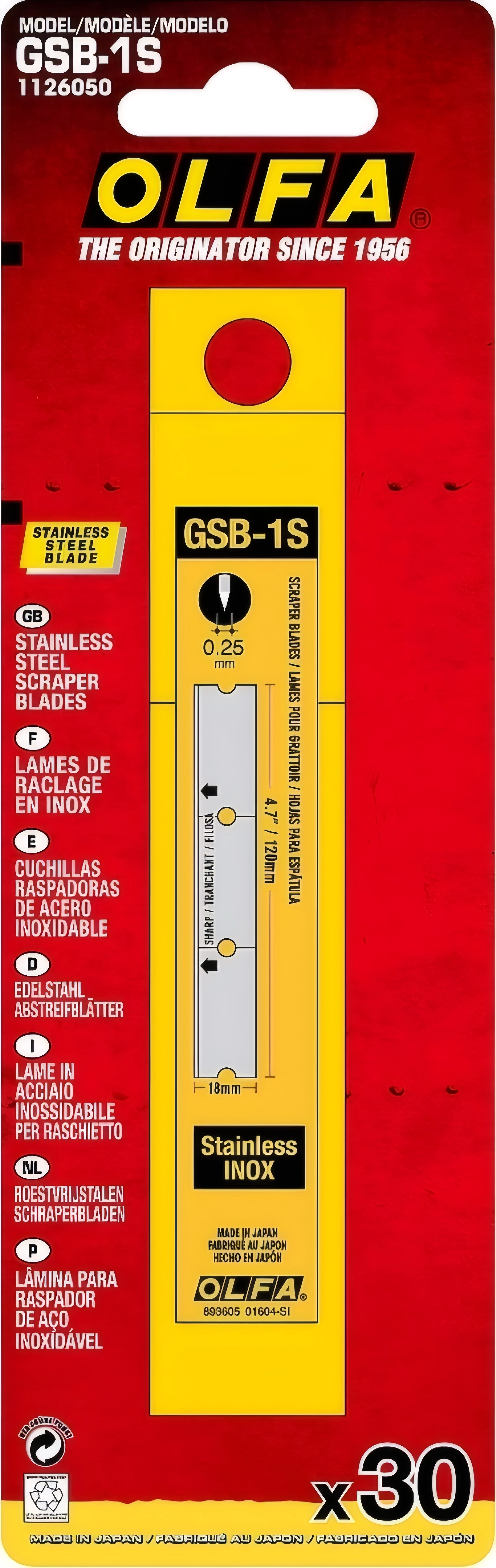 Прямые лезвия GSR-1/3B GSR-2 для скребков 120 мм OLFA 30 шт