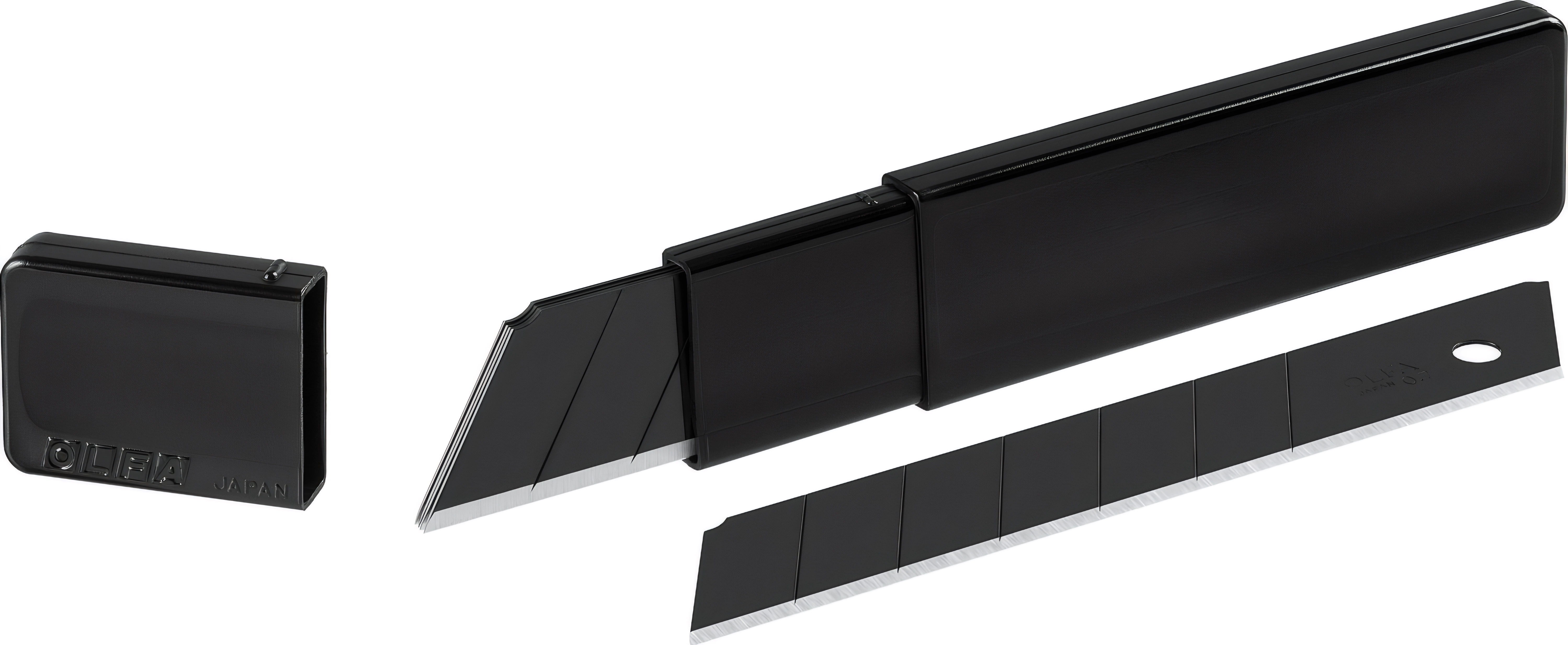 Сверхпрочные лезвия изготовлены из высококачественной японской инструментальной стали и профессионально заточены для обеспечения превосходной остроты и непревзойденной долговечности режущей кромки. При изготовлении лезвий серии «EXCEL BLACK» используется технология двойного затачивания, что даёт дополнительные 25% к остроте данного лезвия. Лезвия имеют глубокую и гладкую сегментную линию для легкого отламывания. Упакованы в удобный кейс для переноски и хранения.