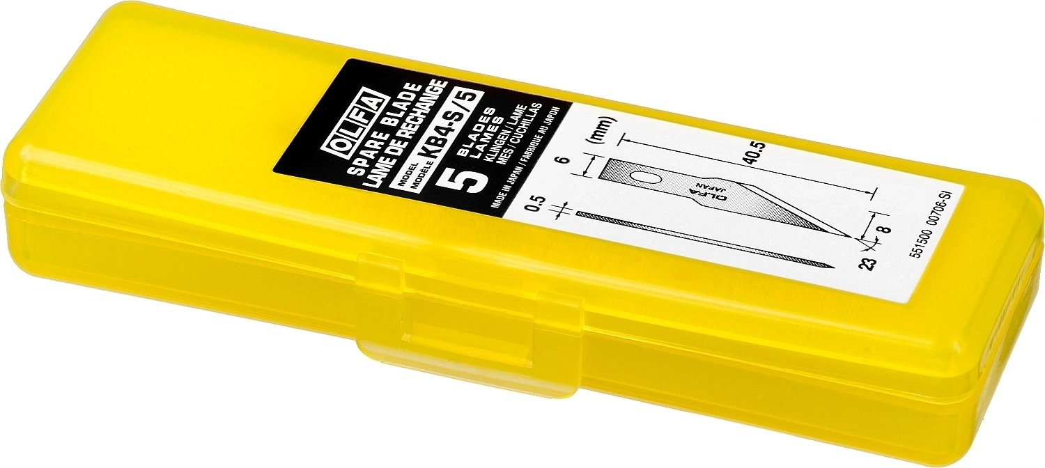 Художественные лезвия OLFA KB4-S/5 отлично подходят для детализированных вырезов. Лезвия изготовлены из высококачественной японской инструментальной стали и профессионально заточены под углом 23° для обеспечения превосходной остроты и непревзойденной долговечности режущей кромки.