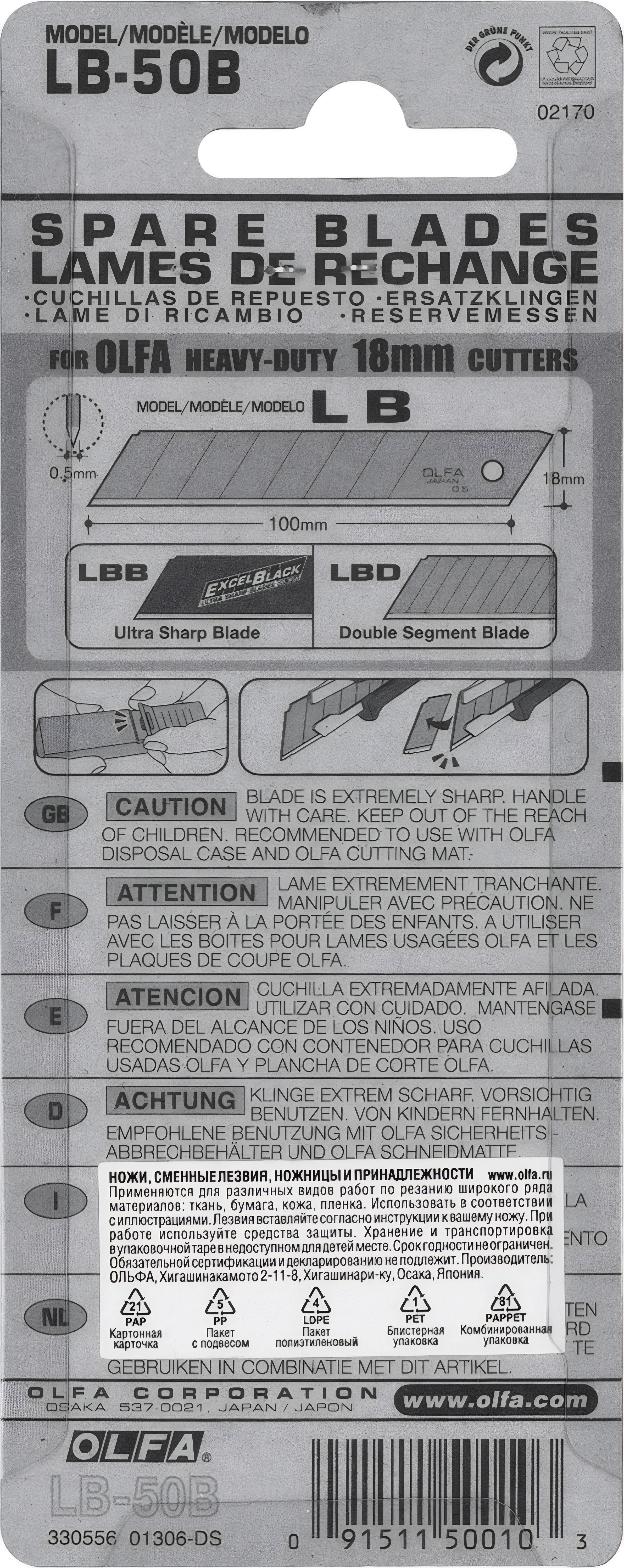 Сегментированные лезвия OLFA 18 х 100 х 0.5 мм, 50 шт