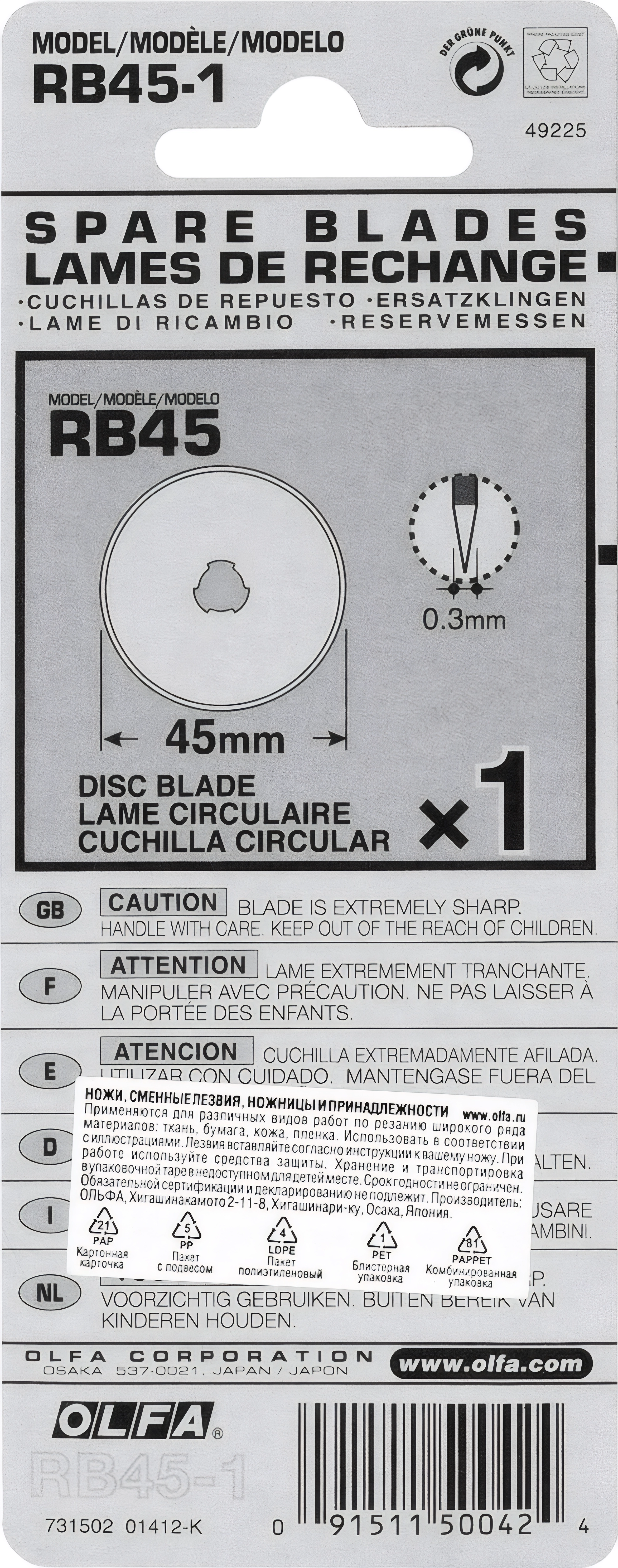 Самое популярное лезвия OLFA RB45-1 может справиться с любой задачей, создавая точные края и чистые разрезы. Лезвия изготовлены из высококачественной легированной вольфрамом стали и профессионально заточены для обеспечения превосходной остроты и непревзойденной долговечности режущей кромки. Поставляются в пластиковом футляре для хранения и утилизации.