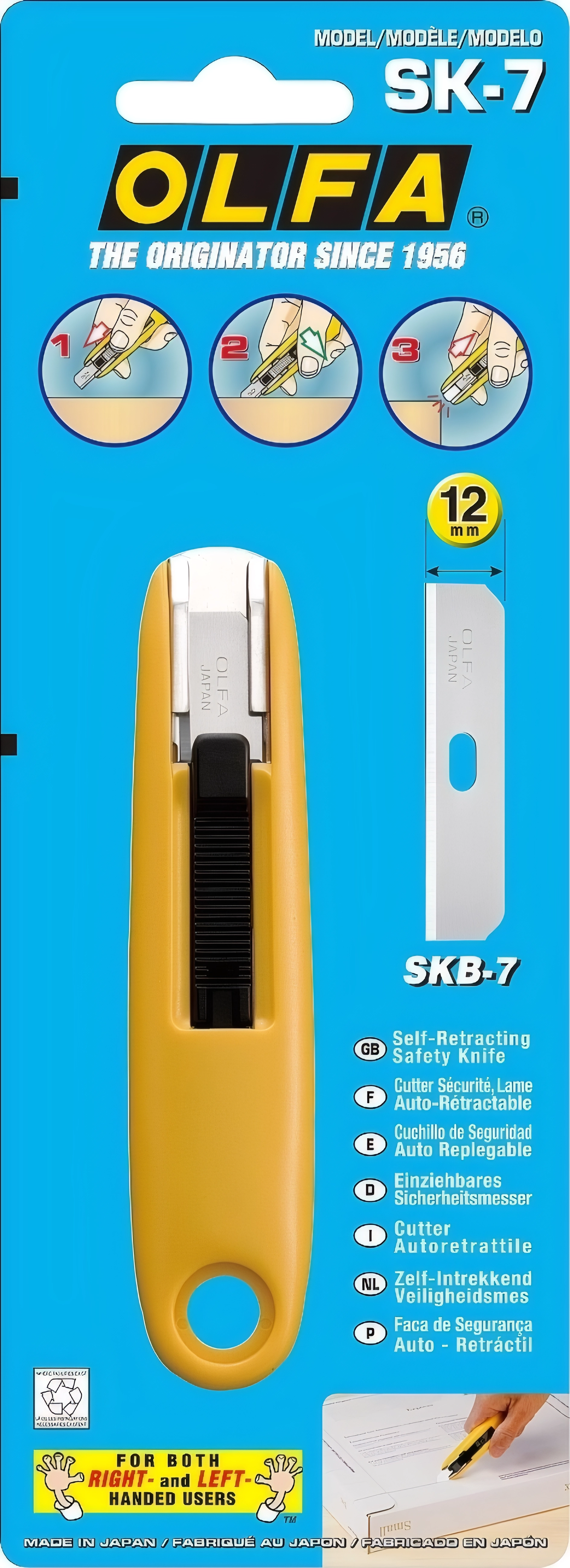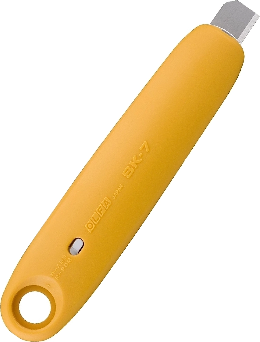 Компактный полуавтоматический нож OLFA SK-7 с втягивающимся лезвием — это универсальный и удобный инструмент, который с легкостью помещается в кармане. Прочный корпус из ABS-пластика с петлей для подвеса имеет утопленную направляющую из нержавеющей стали, для предотвращения случайного раскрытия в сумке или кармане.