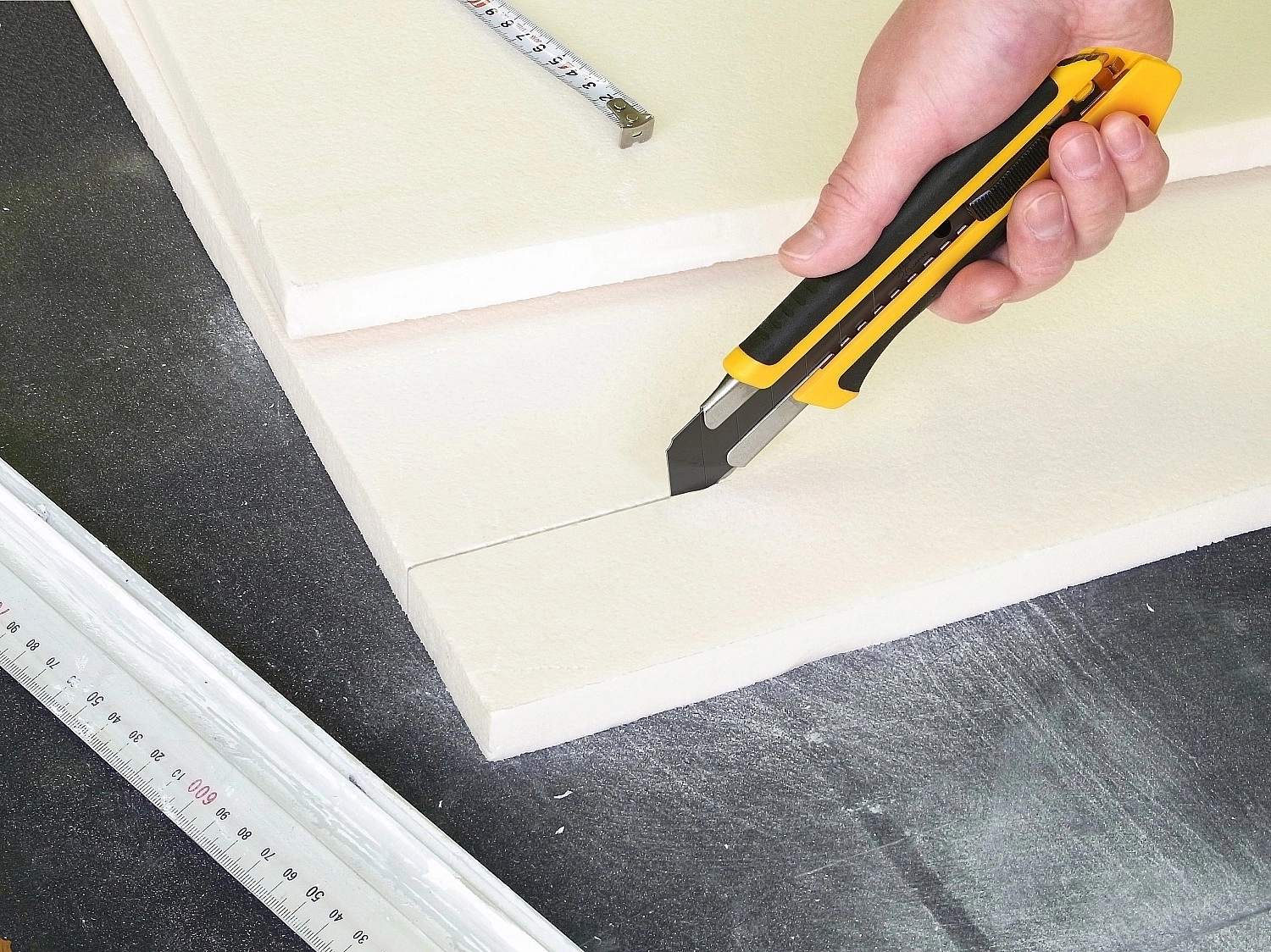Применяется для резки кожи, кровельных материалов, гипсокартона, фанеры и резины.