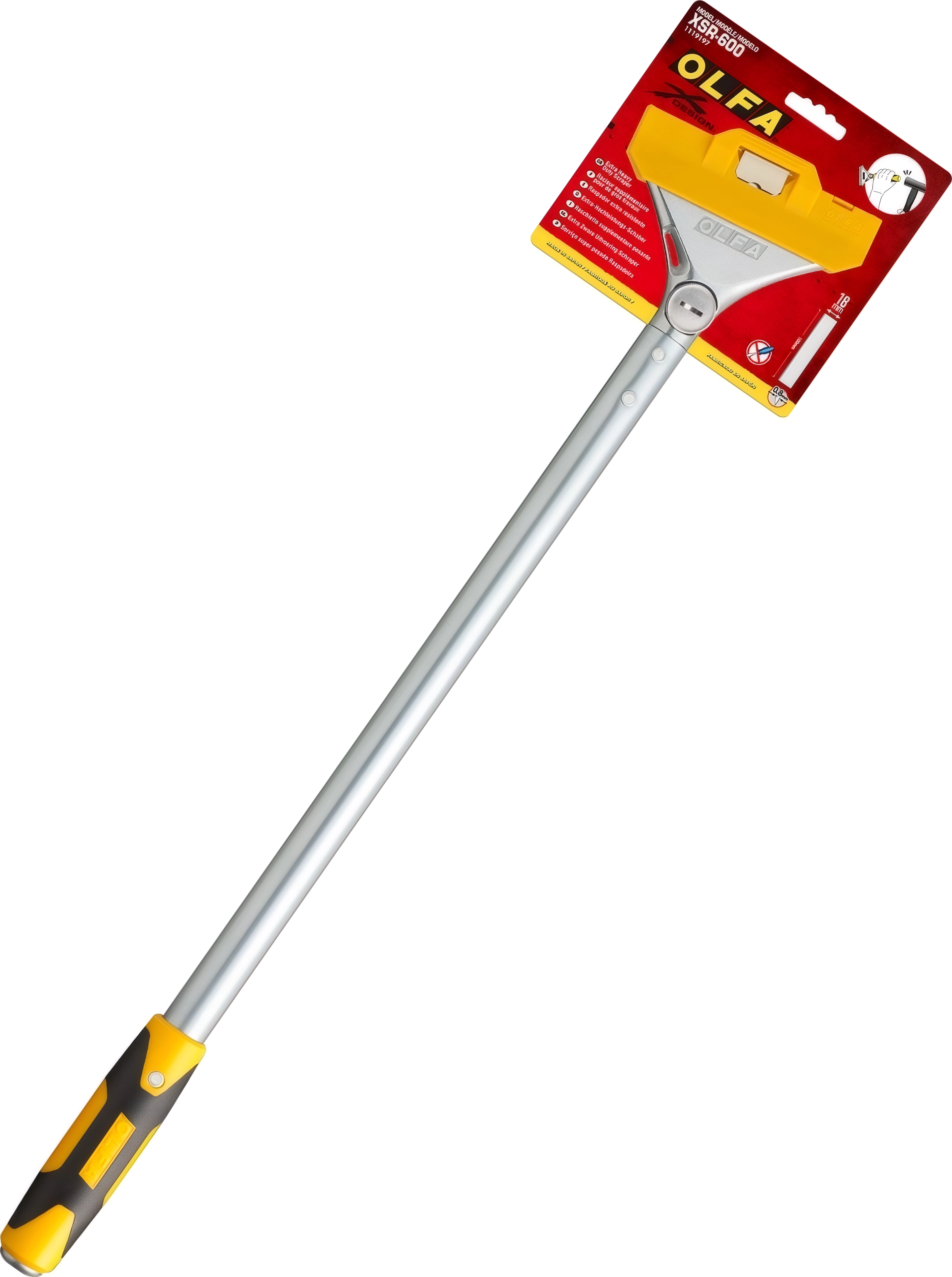 Скребок OLFA - повышенная безопасность, удобство в использовании и выделяющийся внешний вид. Прорезиненная металлическая рукоять, состоящая из мягкой черной части и более жесткой желтой, обеспечивает удобный хват и предотвращает выскальзывание скребка из рук.