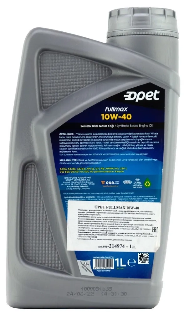 Синтетическое моторное масло Opet Fullmax 10W-40 1л