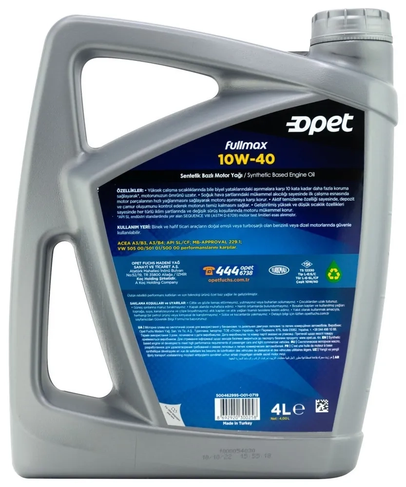 Синтетическое моторное масло Opet Fullmax 10W-40 4л