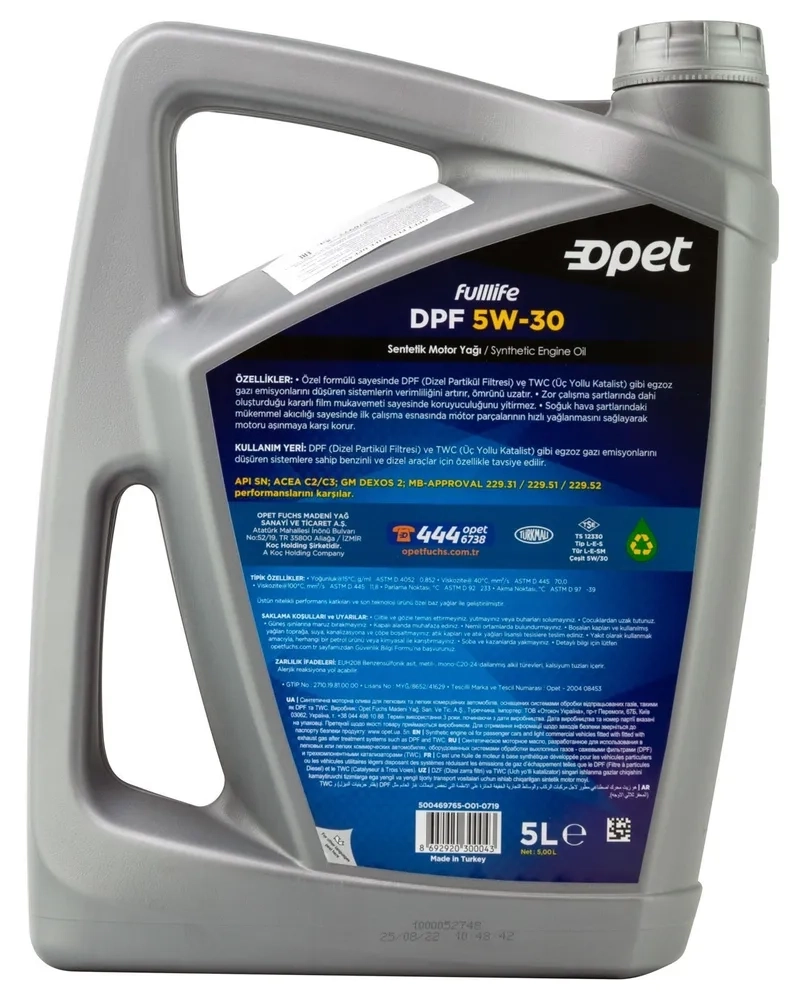 Синтетическое моторное масло Opet Fulllife DPF 5W-30 5л