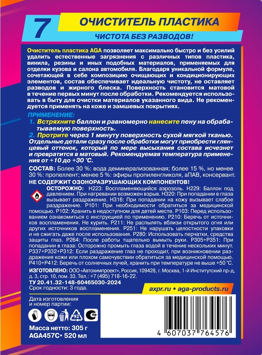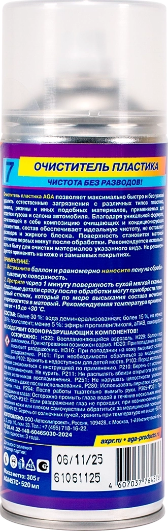 Очиститель пластика AGA С7 матовый, 520мл AGA457C