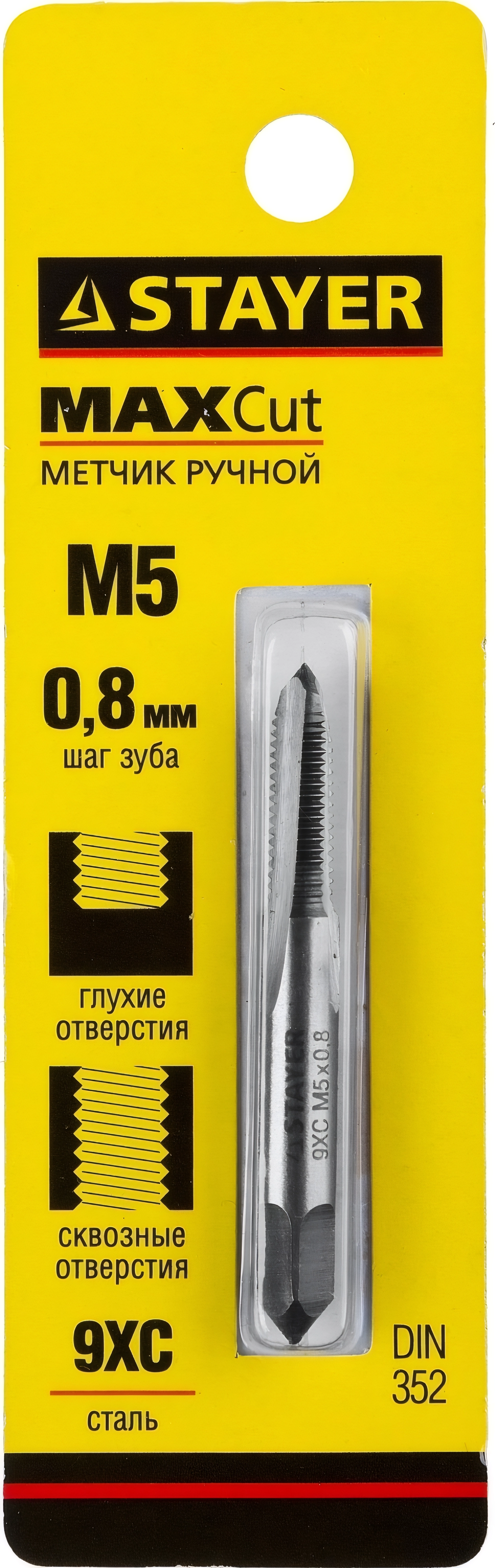 Одинарный метчик для сквозных и глухих отверстий STAYER M5 х 0.8