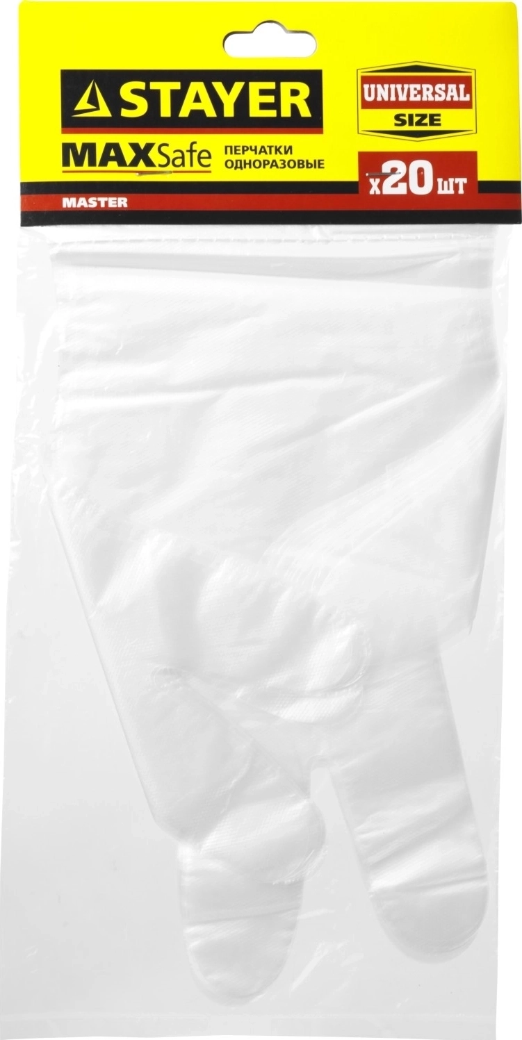 Одноразовые перчатки STAYER универсальный размер, 20 шт, полиэтиленовые