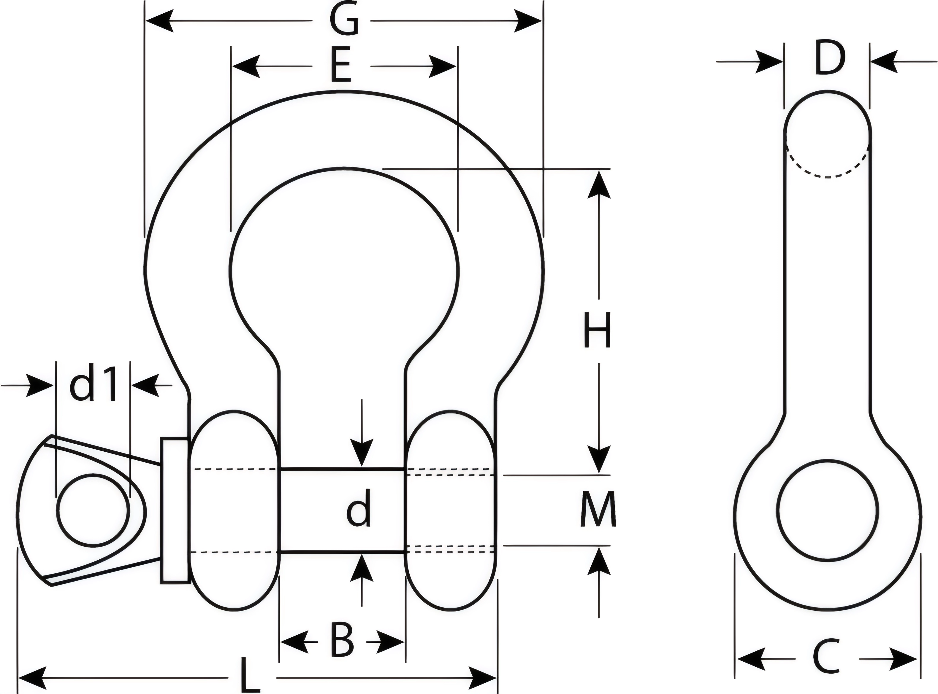 - Омегообразная форма облегчает использование скобы при многоплечевом устройстве такелажа