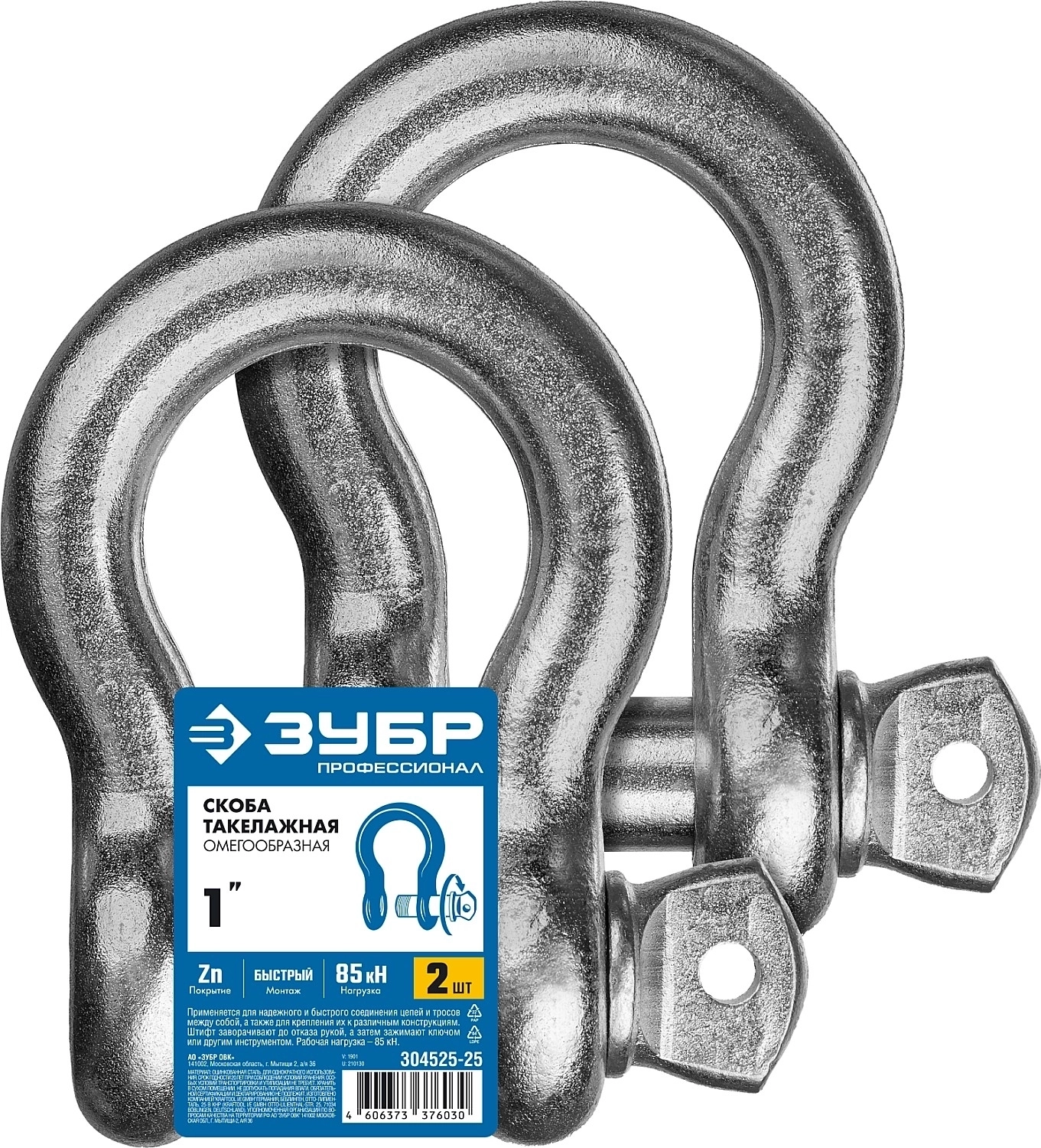 Омегообразная скоба ЗУБР 1″ 25.4 мм 2 шт палец 29 мм г/п 8.5 тн цинк