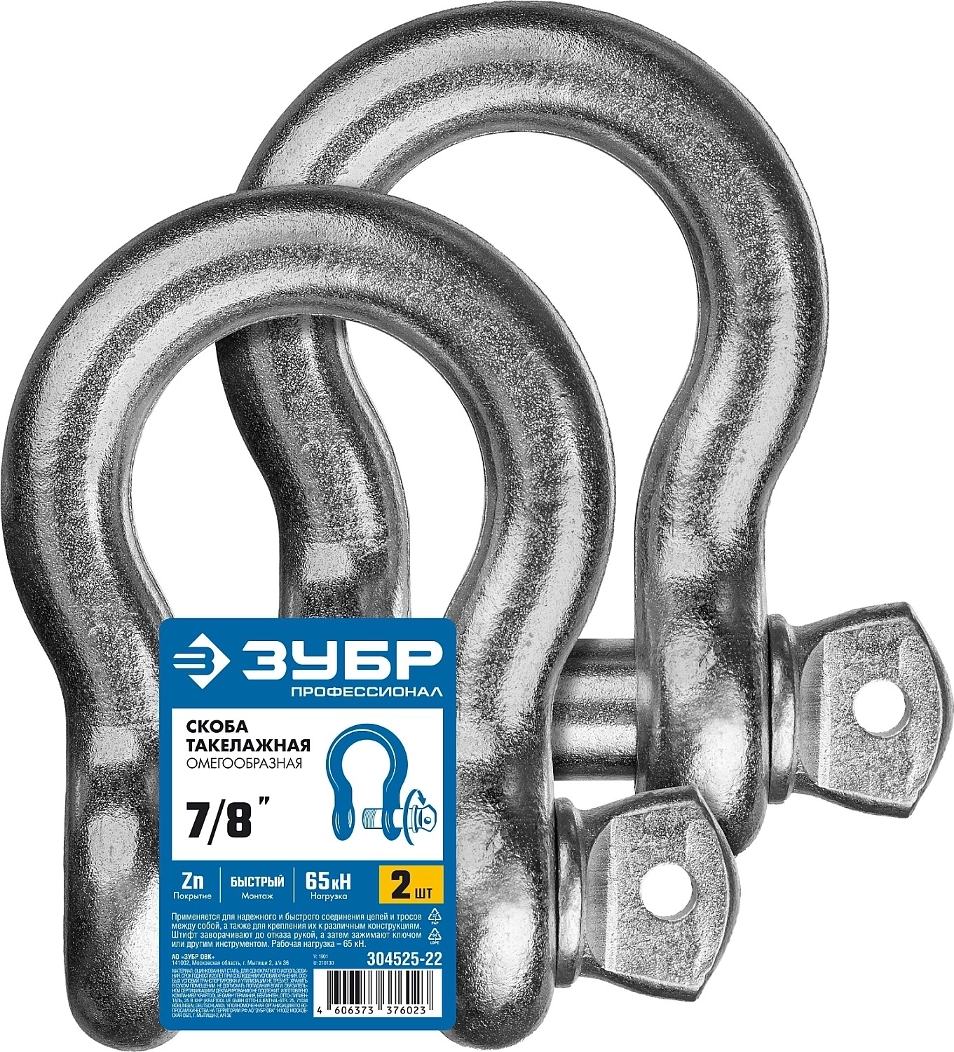 Омегообразная скоба ЗУБР 7/8″ 22.2 мм 2 шт палец 25 мм г/п 6.5 тн цинк