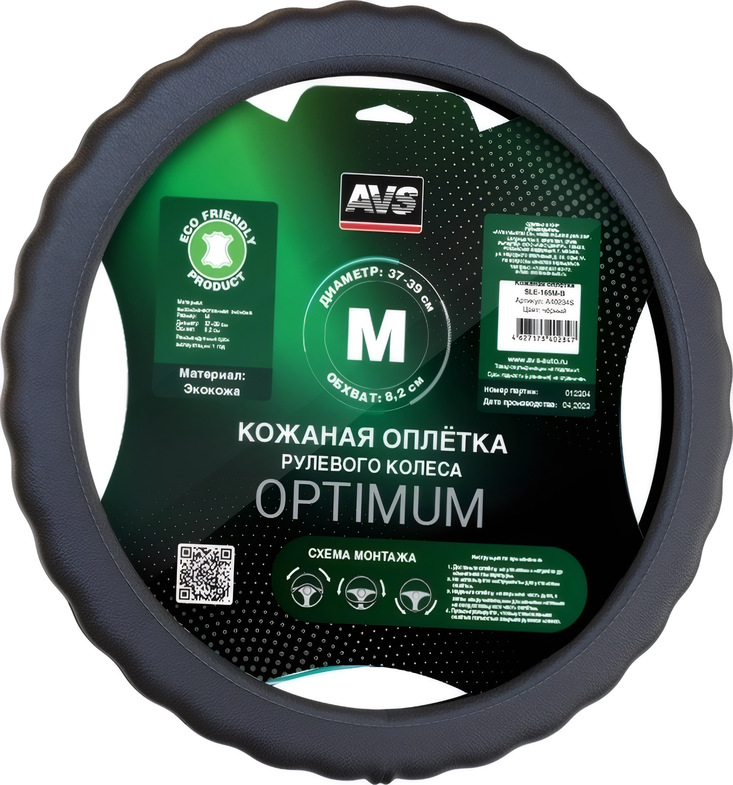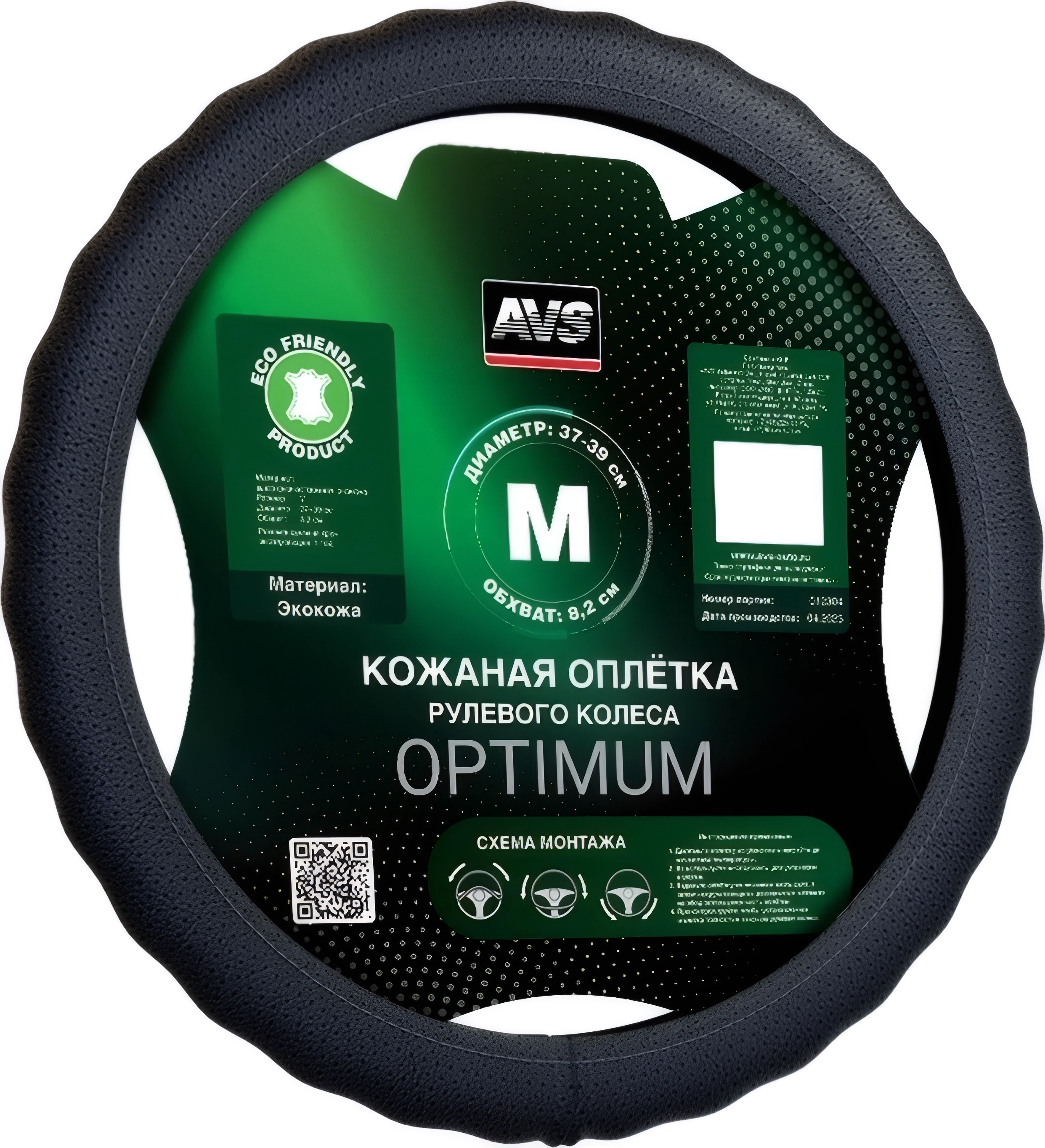Оплетка на руль (иск. кожа) AVS IL-165M-B (размер M, черный) - Серия "Basic"