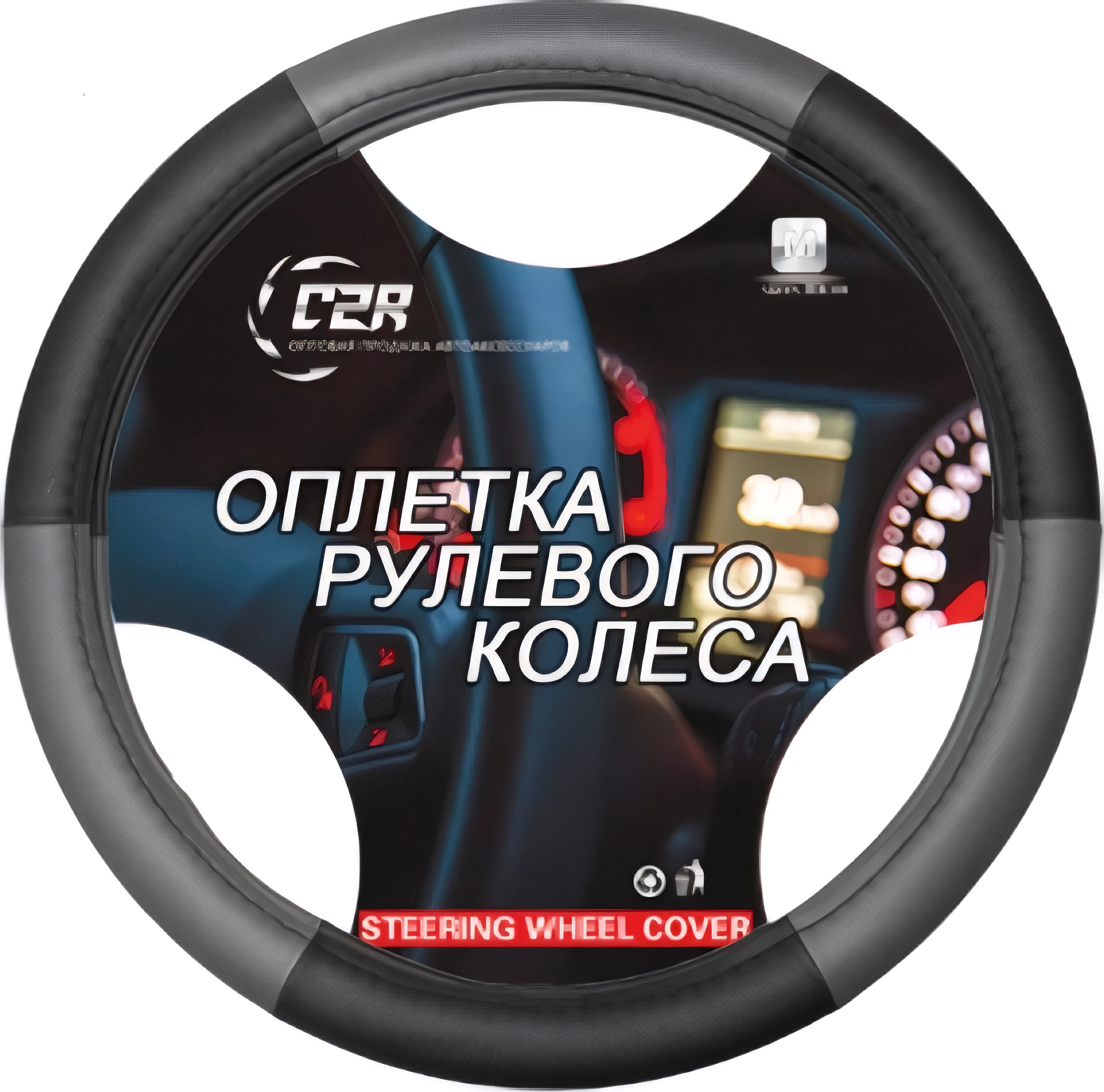 Оплетка на руль C2R M (37-39см) экокожа черный с серыми вставками