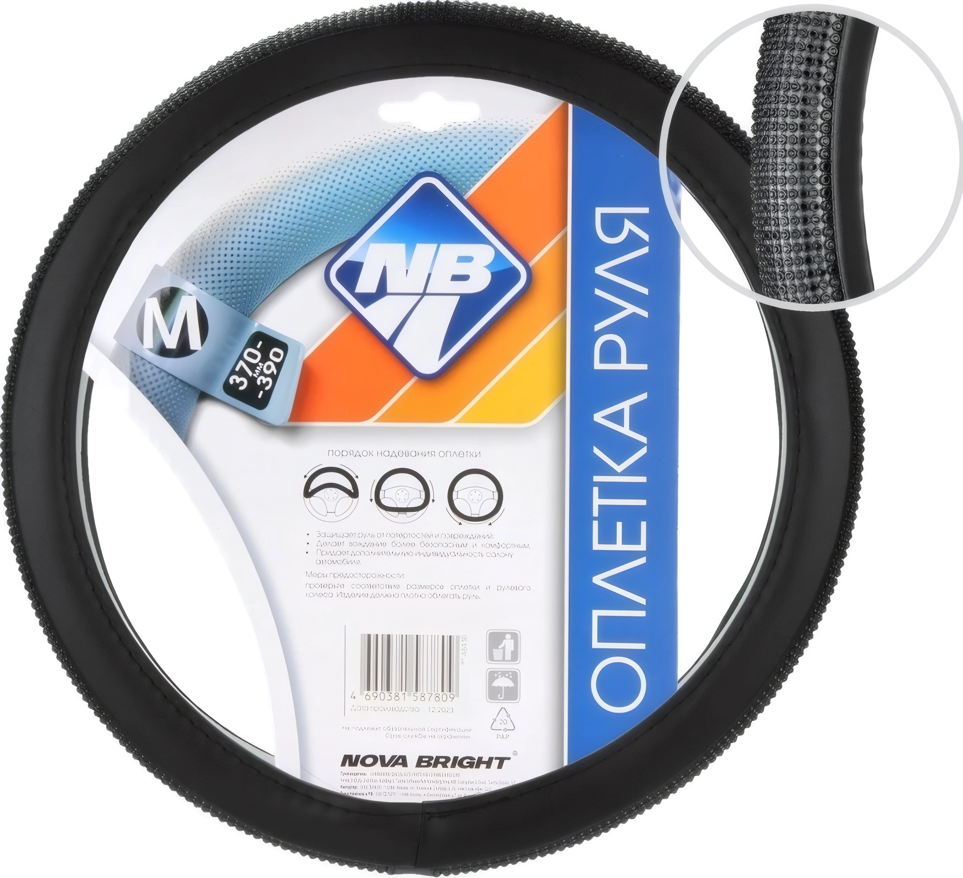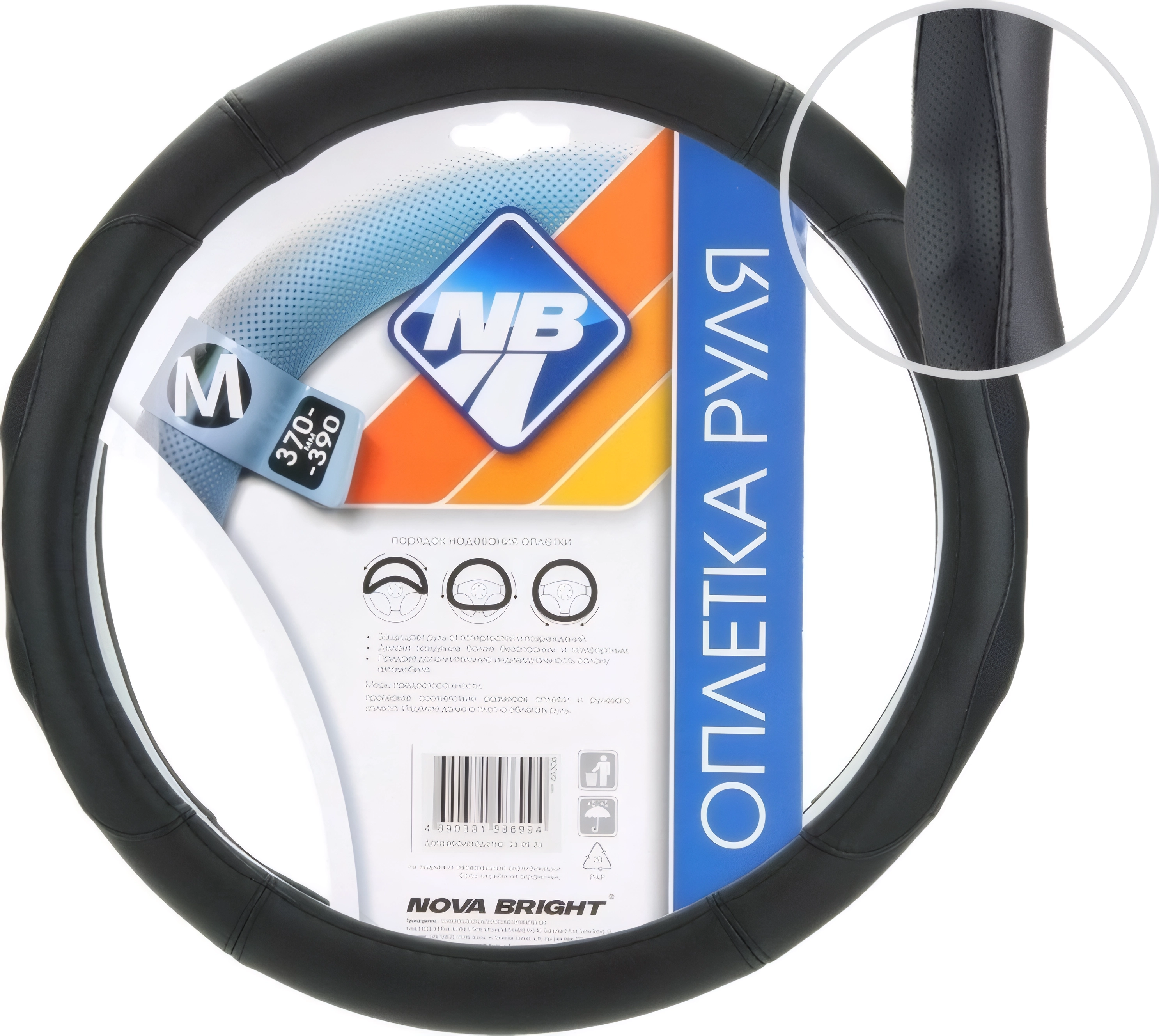 Оплетка на руль (иск. кожа) AVS IL-165M-B (размер M, черный) - Серия "Basic" арт. 119546