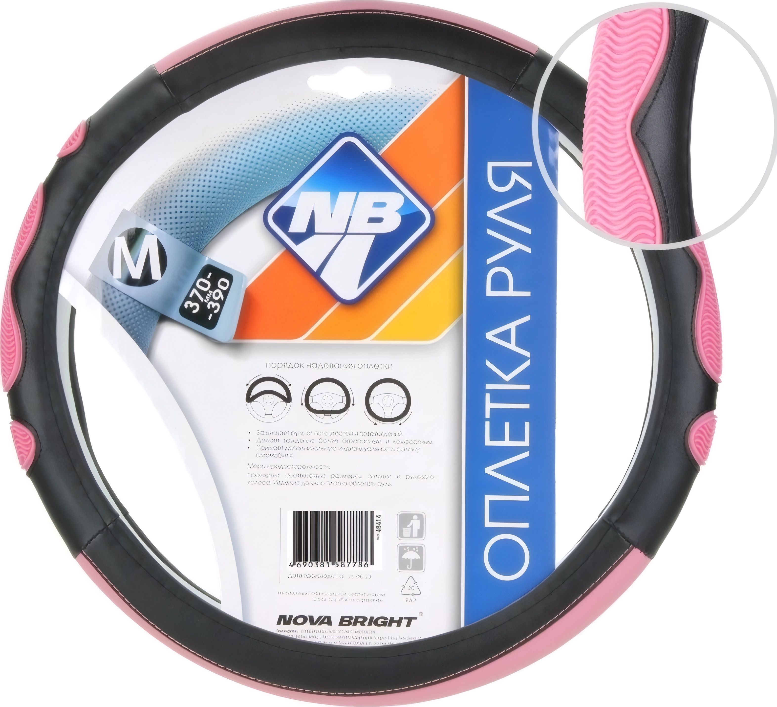 Оплетка на руль M (37-39см) экокожа черная с розовыми массажными вставками арт. 121569