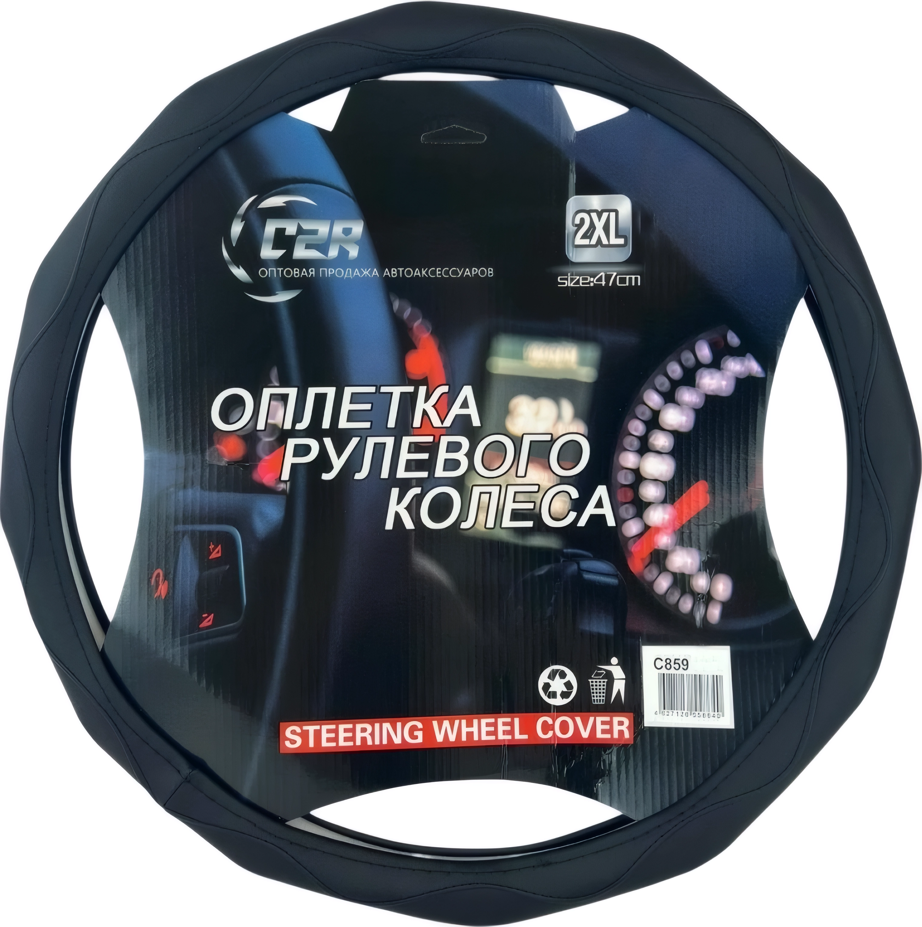 Оплетка на руль (иск. кожа) AVS IL-296M-B (размер M, черный) - Серия "Basic" арт. 119545