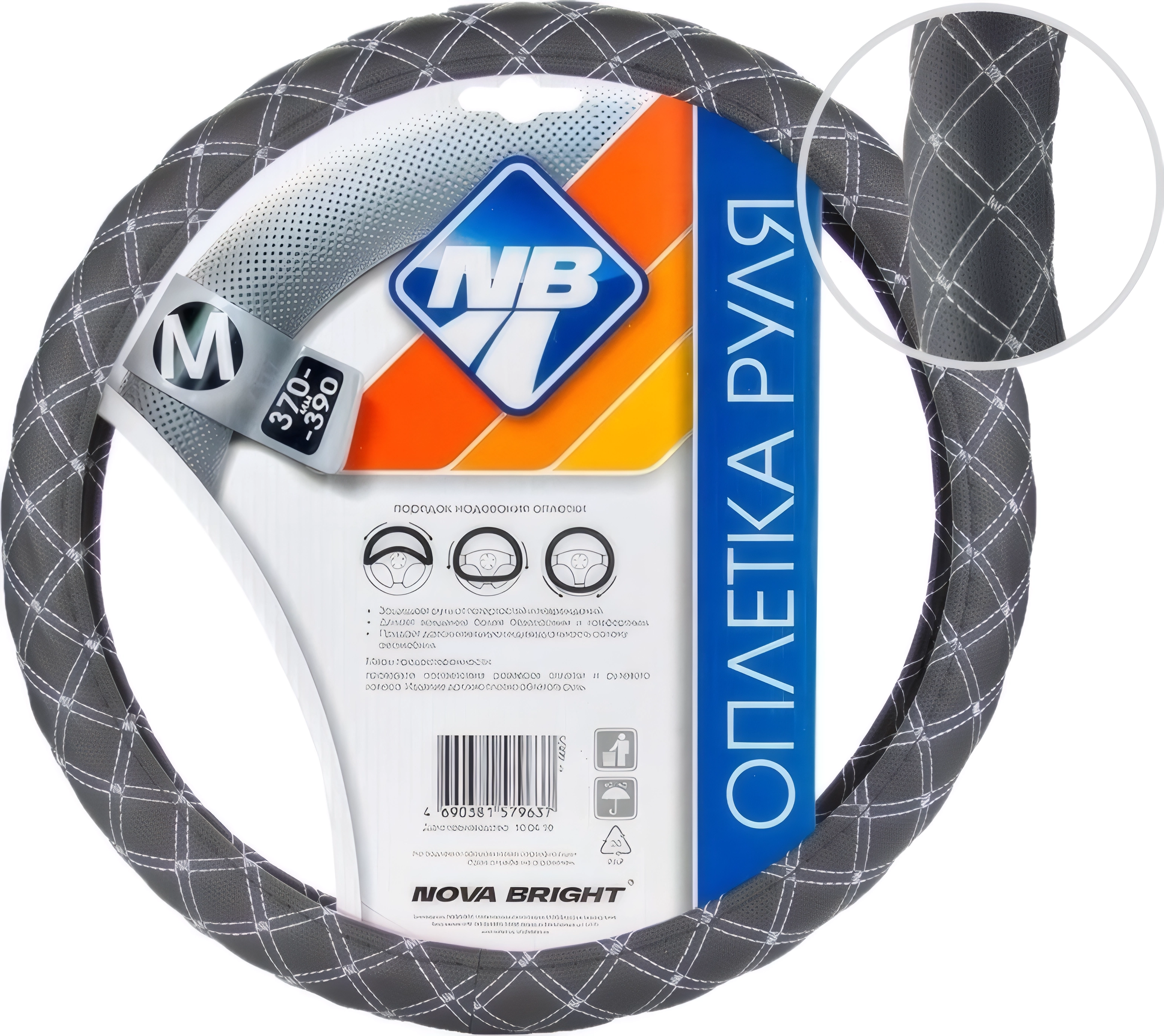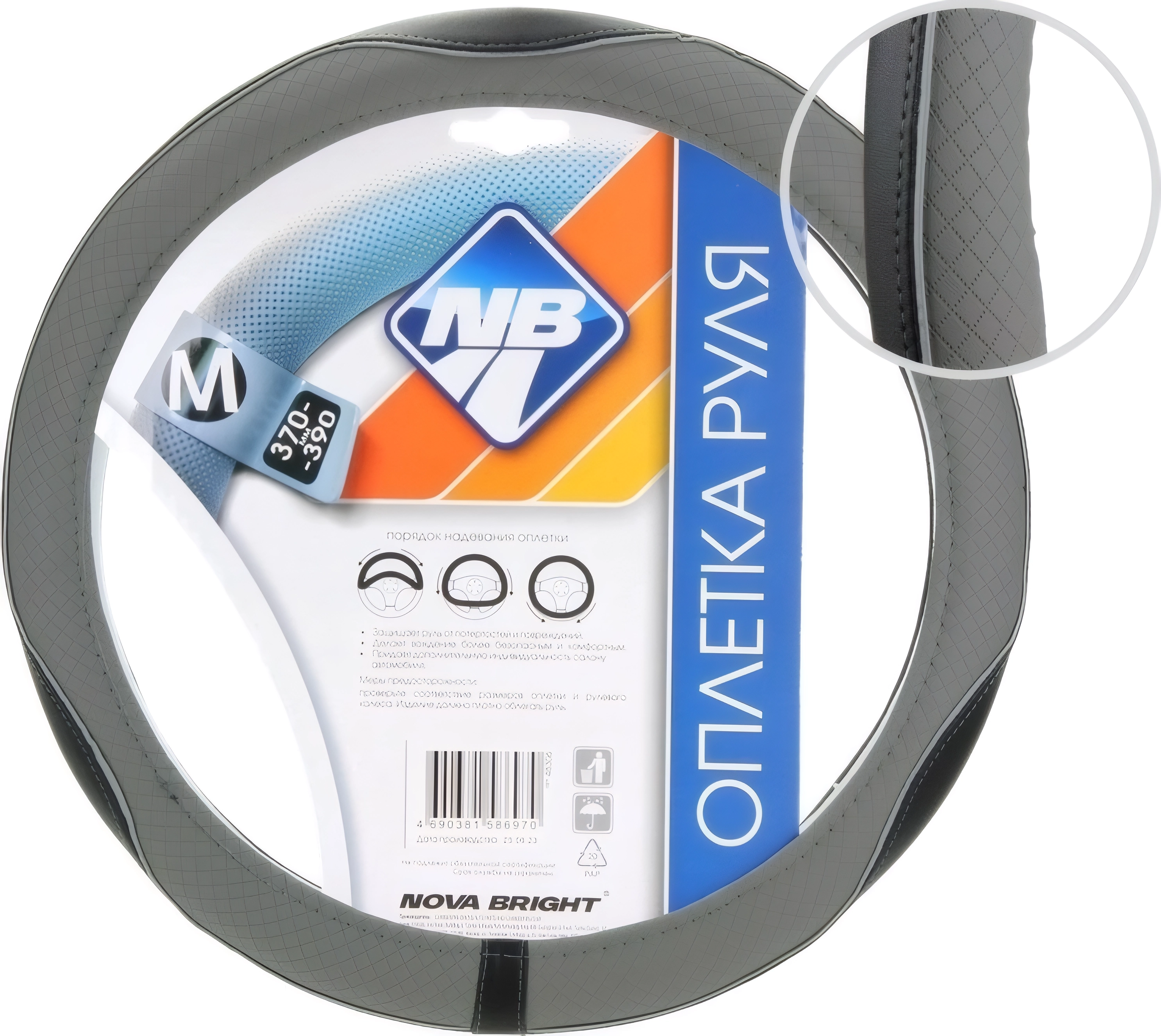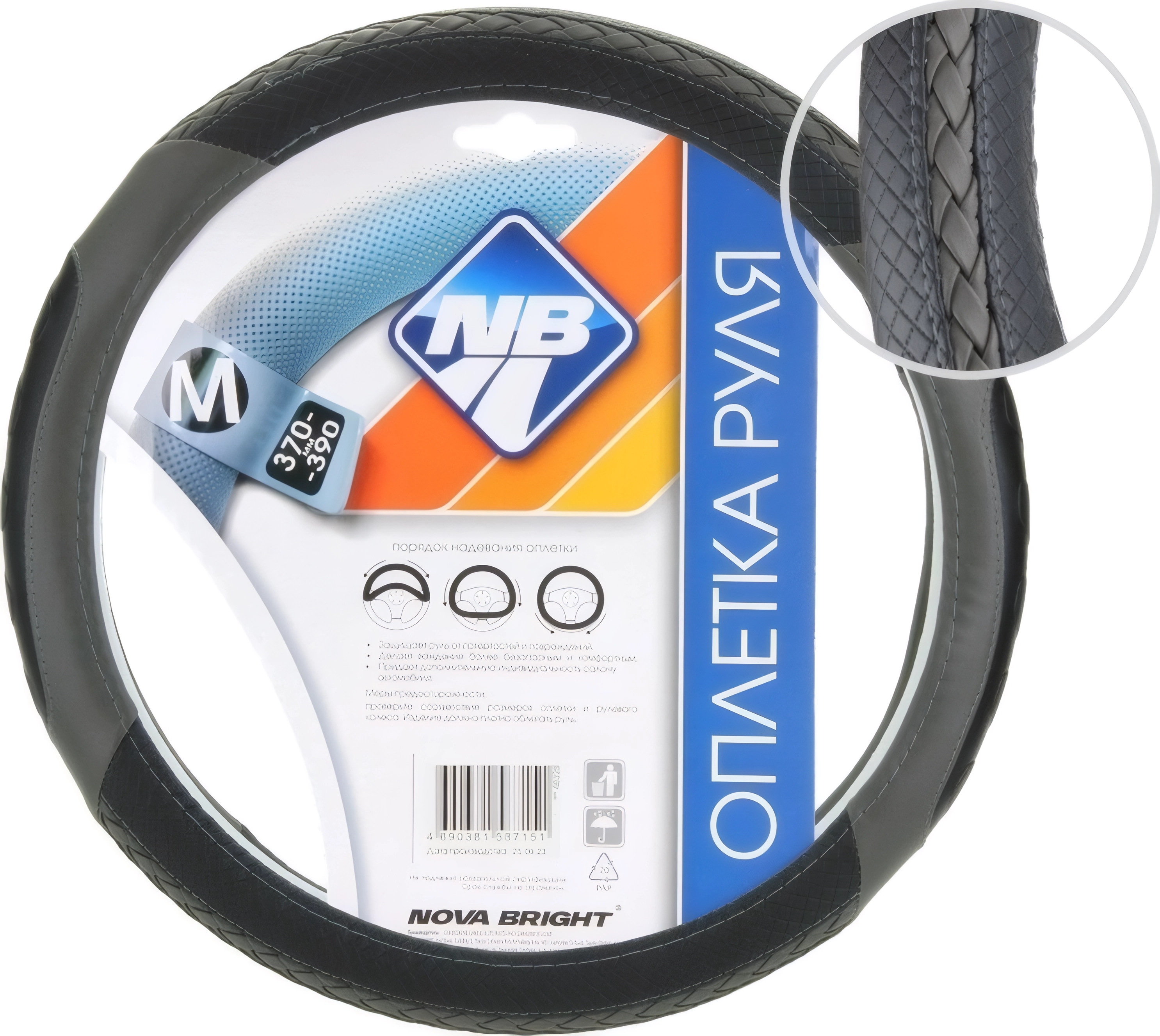 Оплетка на руль M (37-39см) экокожа черно-серая с плетеными вставками арт. 121573