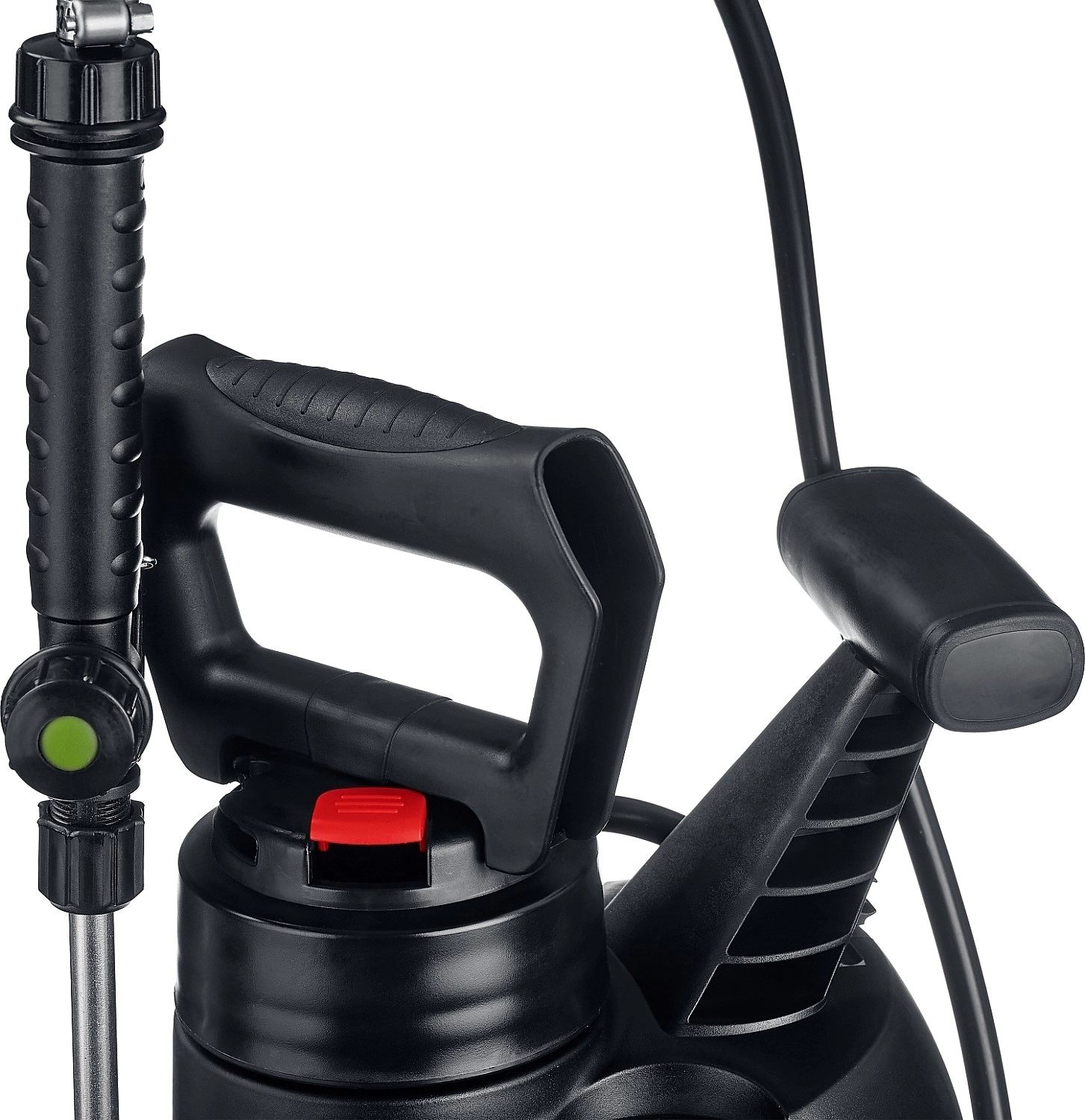 - Для удобства хранения и транспортировки разбрызгиватель может быть зафиксирован в рукоятке насоса.