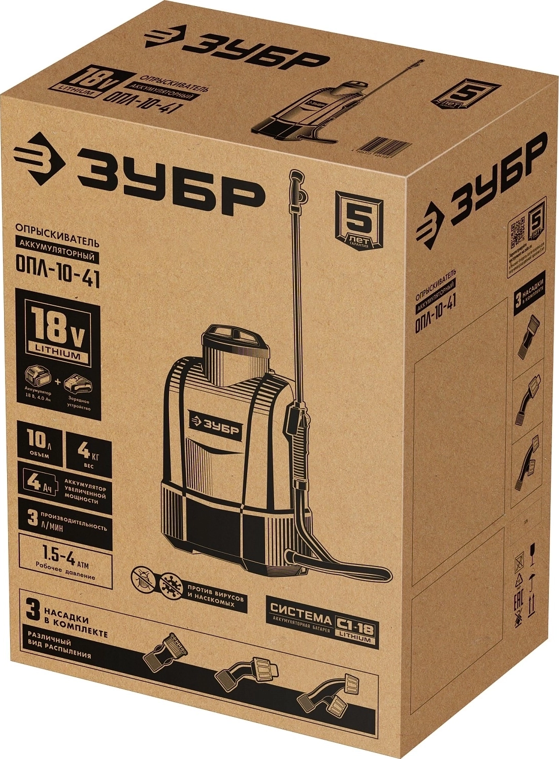 ЗУБР ОПЛ-10-41 Аккумуляторный опрыскиватель 10 л, 1 АКБ 4 А·ч арт. 111710